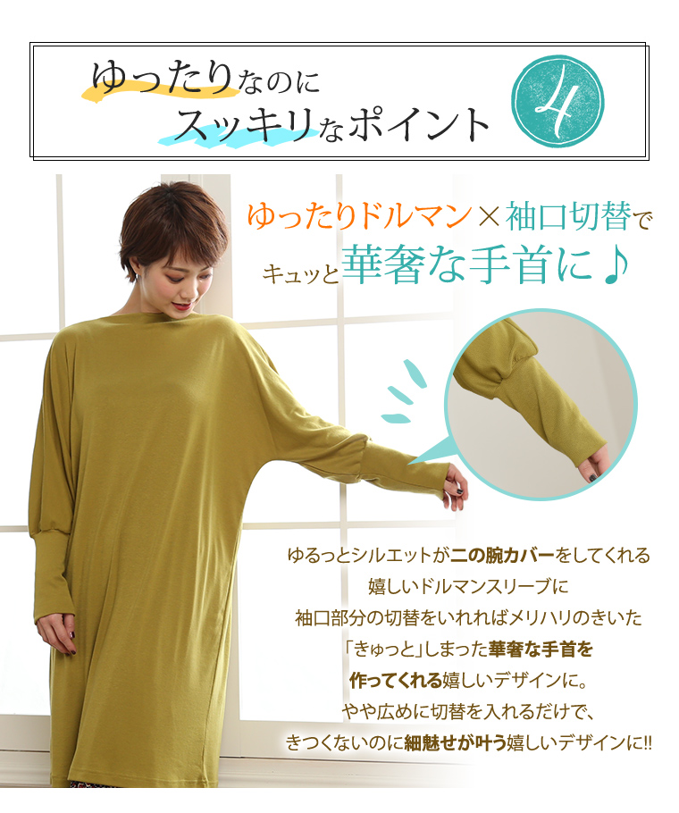 袖口リブで手元すっきり。ドルマンスリーブでゆったりとした着心地