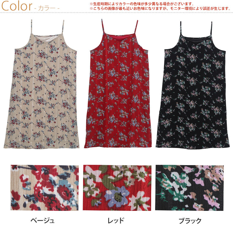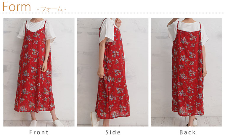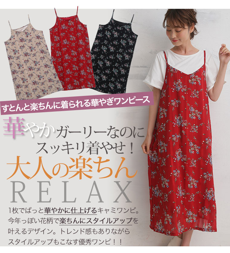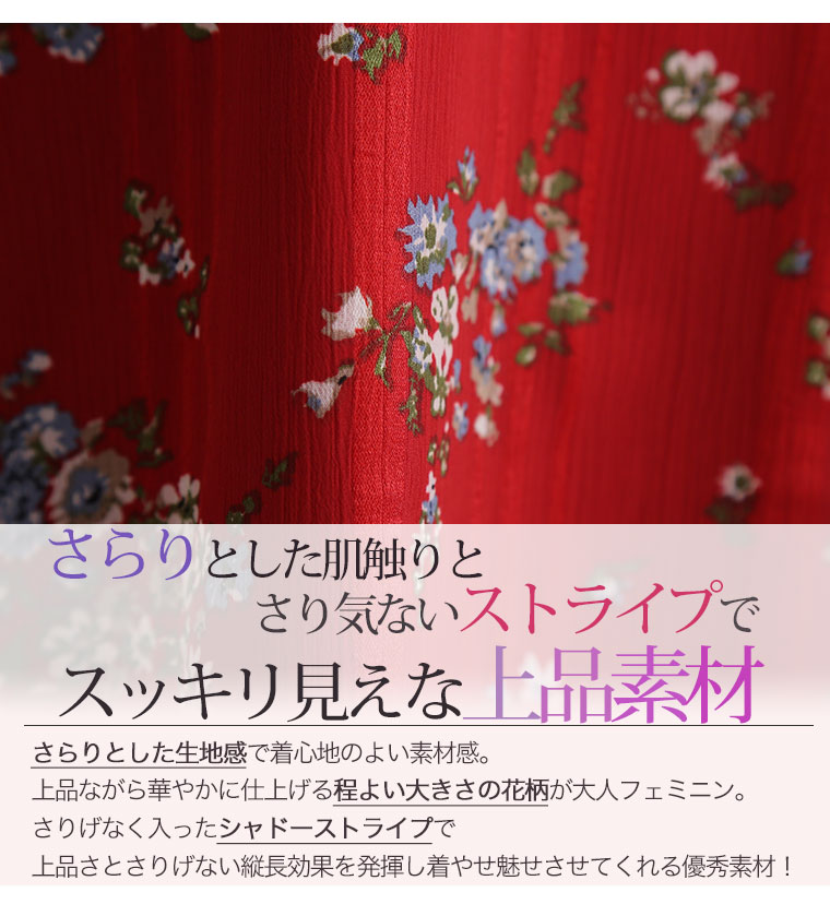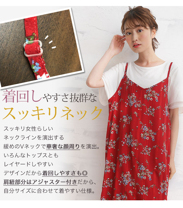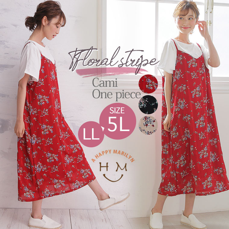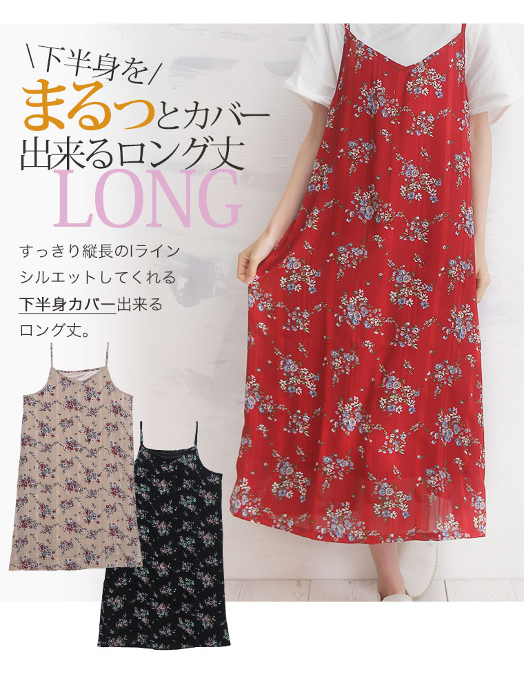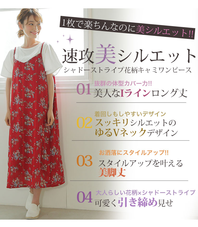 Iラインですっきり上品魅せストライプの花柄キャミワンピース