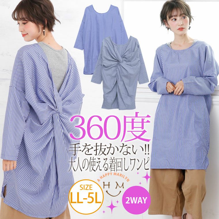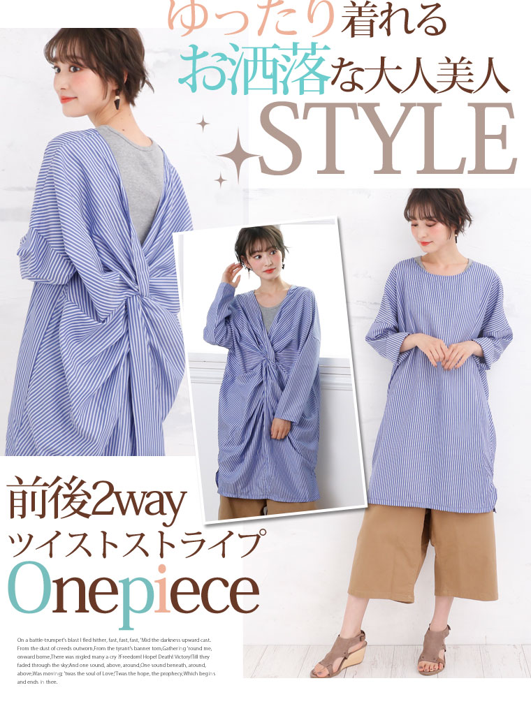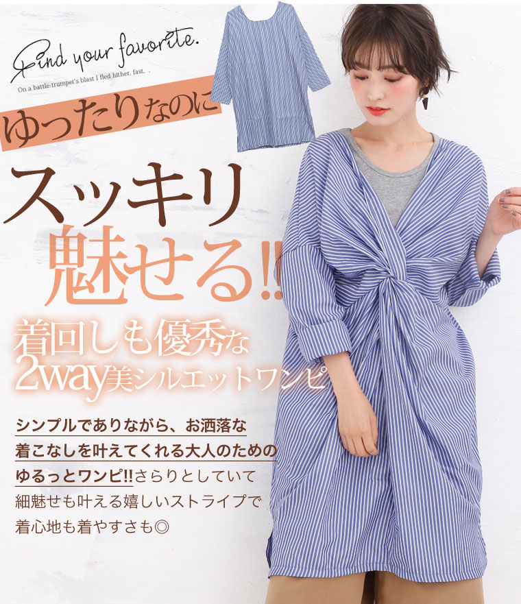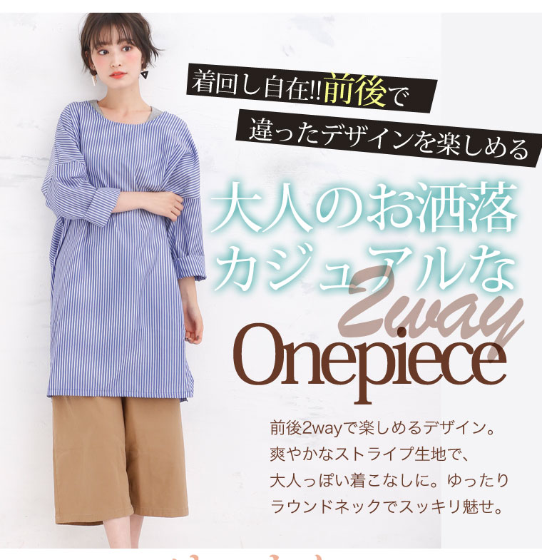 爽やかなストライプで大人っぽく。360度美ライン2wayワンピース