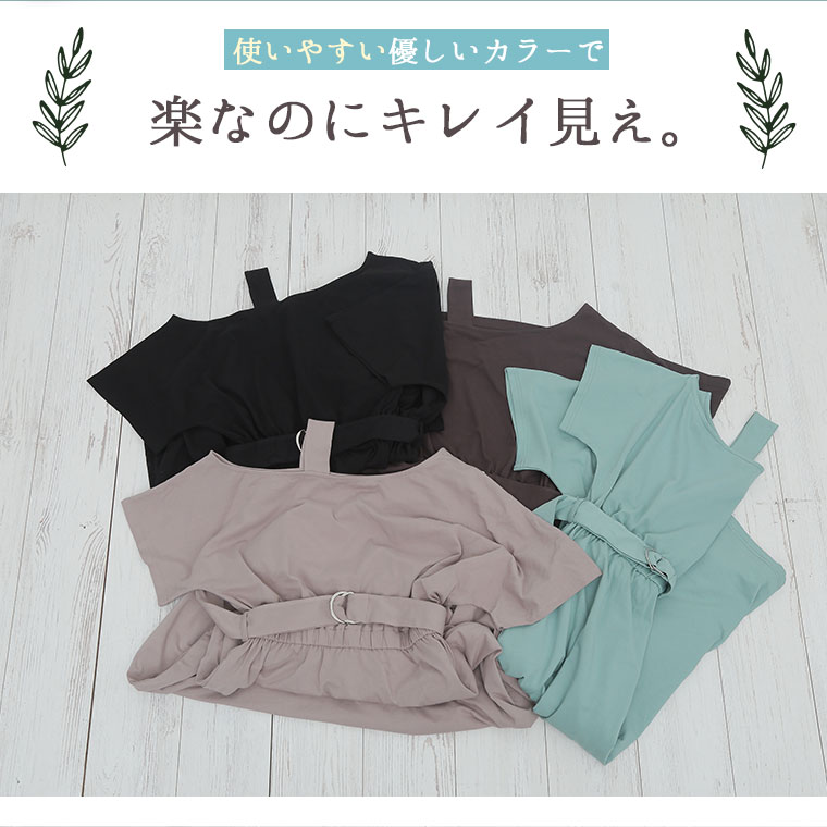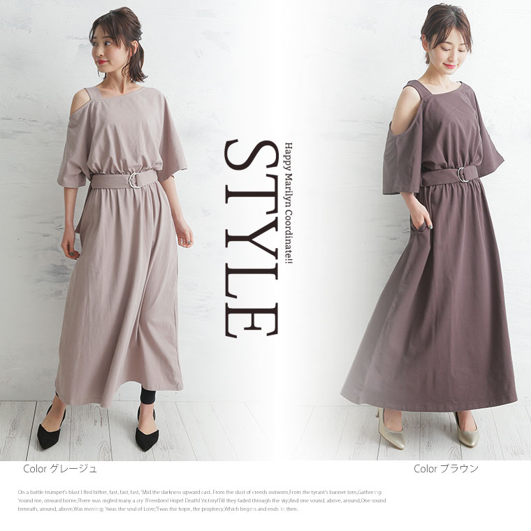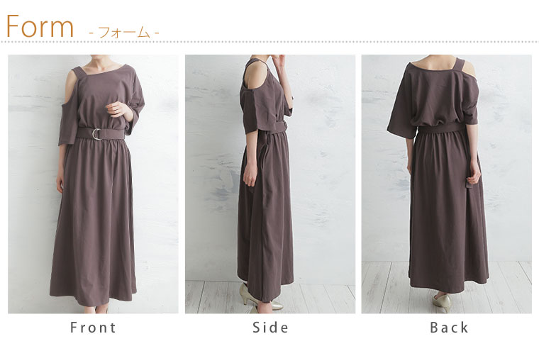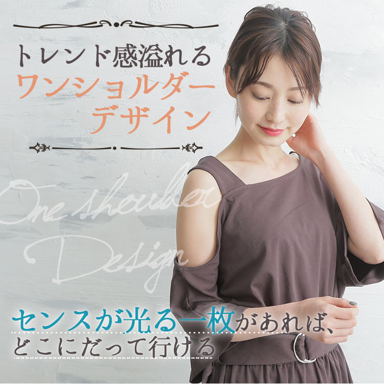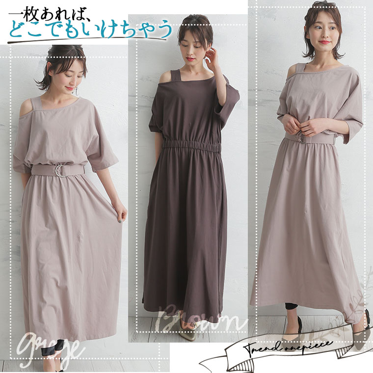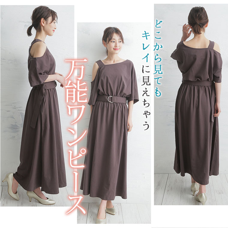 キレイ見えカットソーシリーズ ウエストシャ-リングワンピース