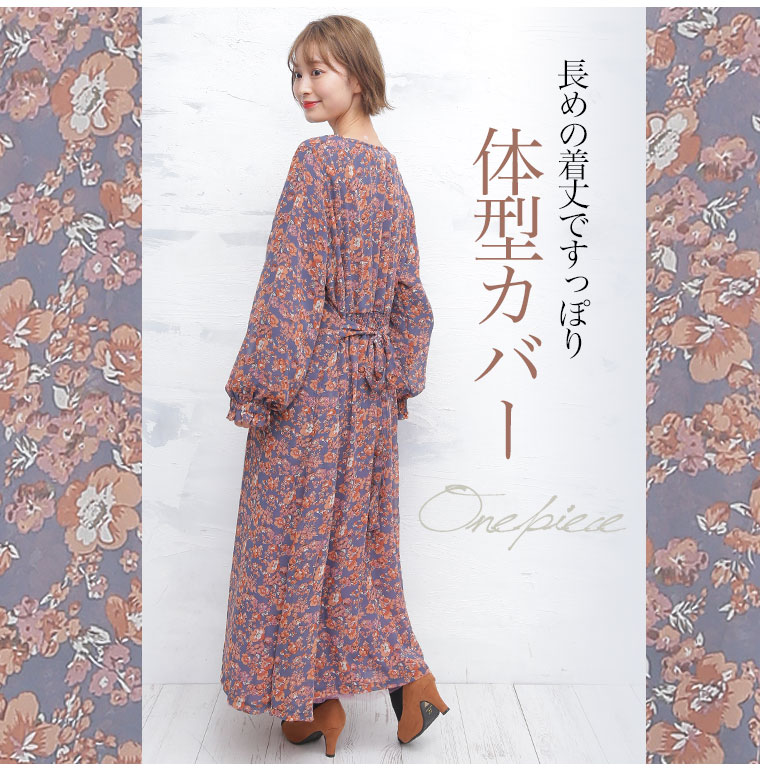 ふわりとスカートがゆれる♪長めの丈ですっぽり体型カバー