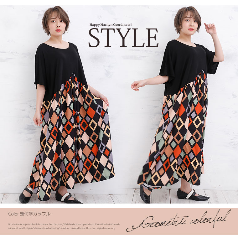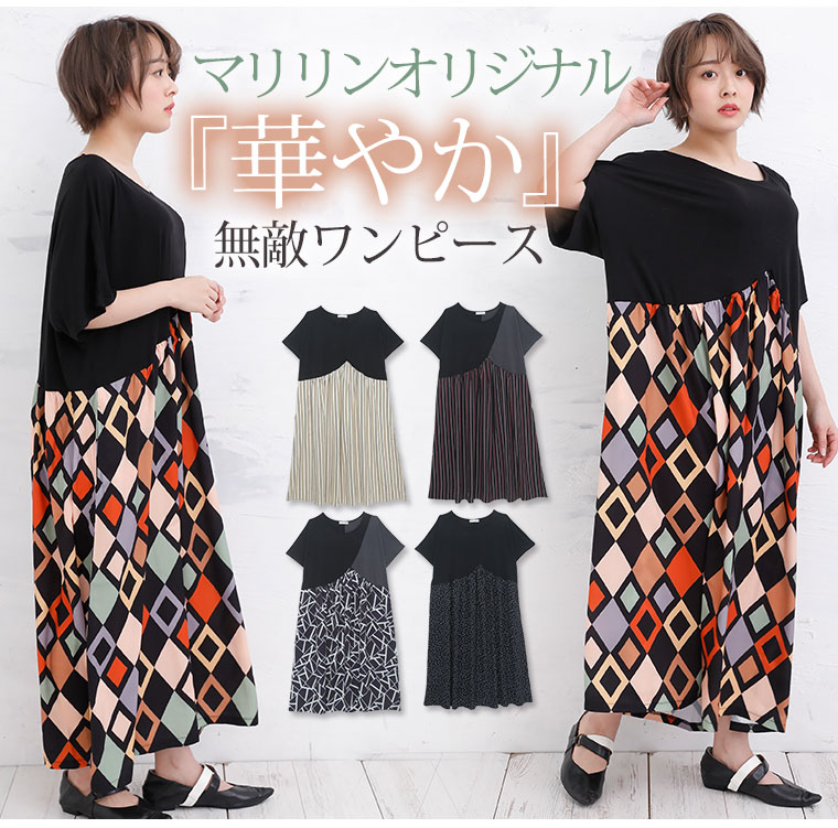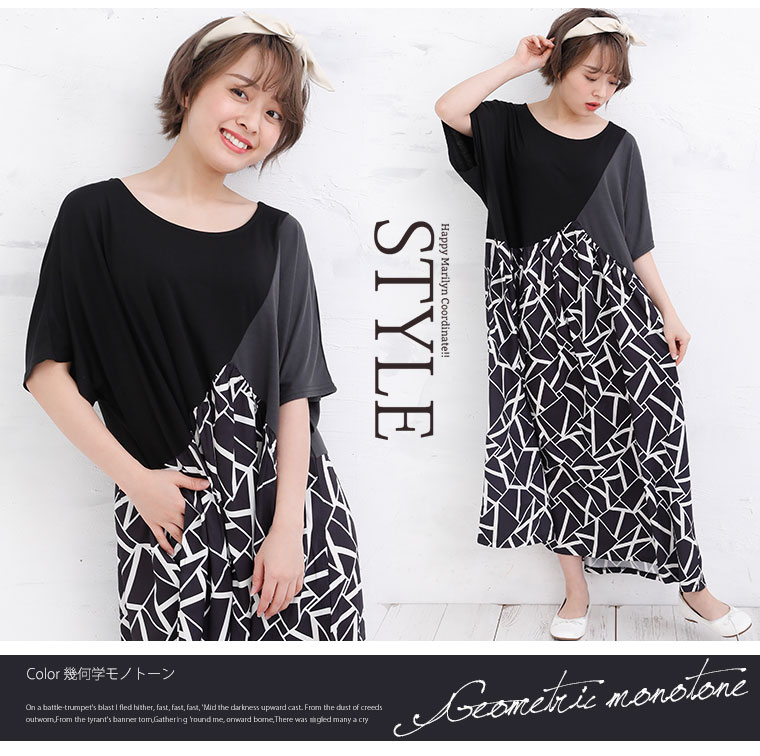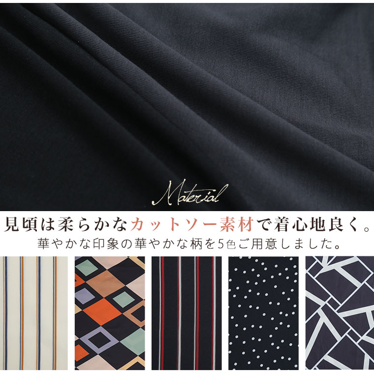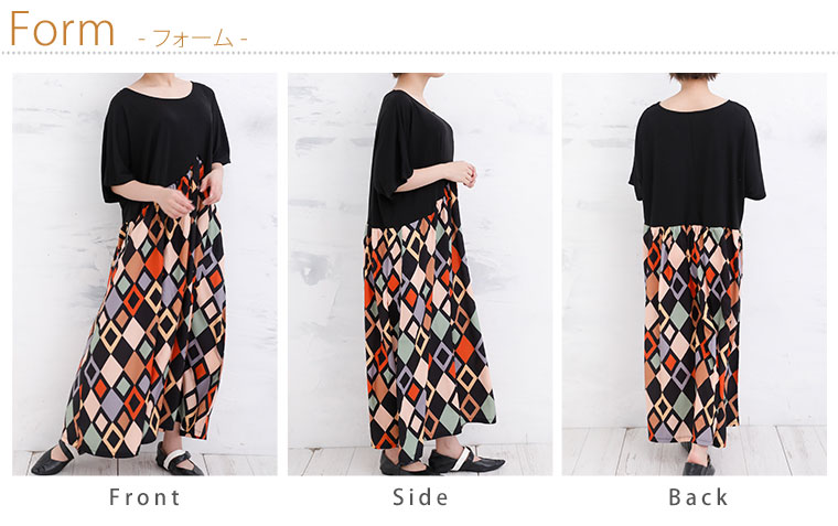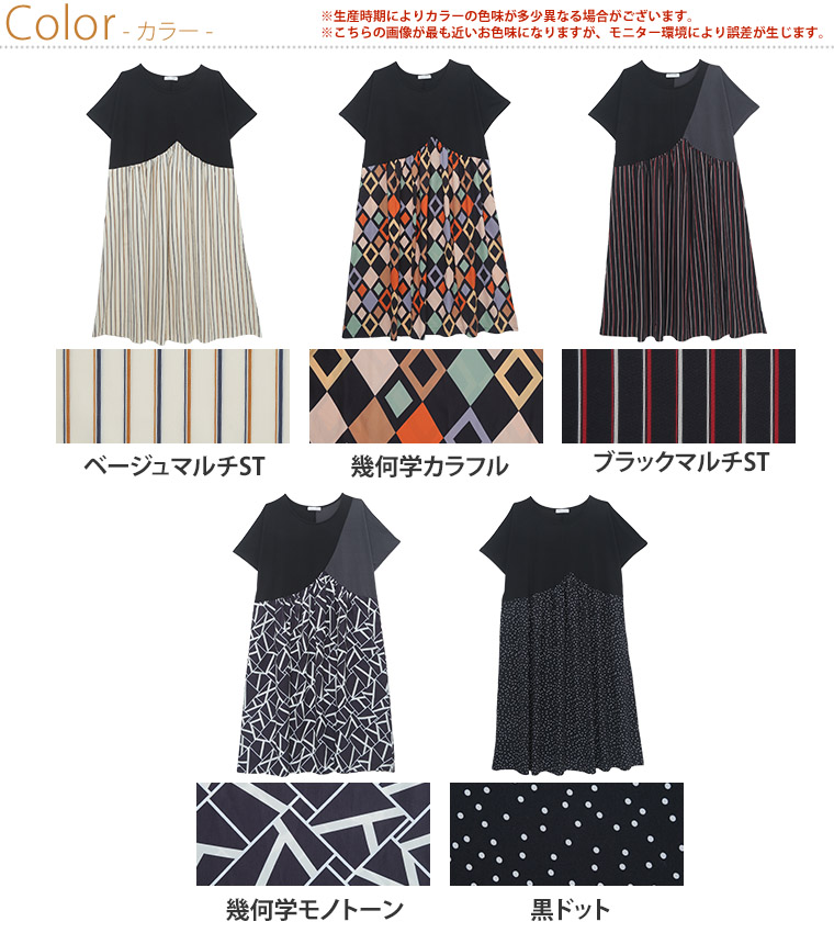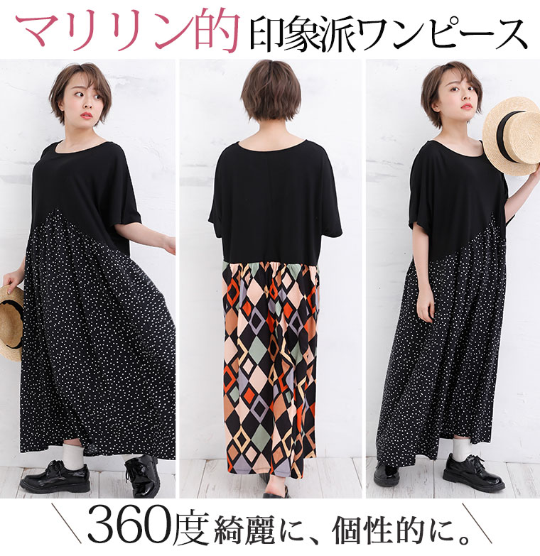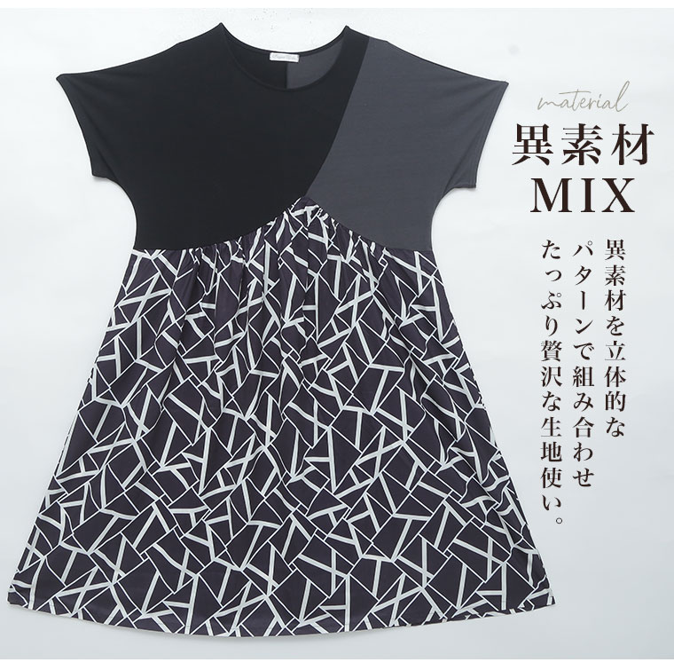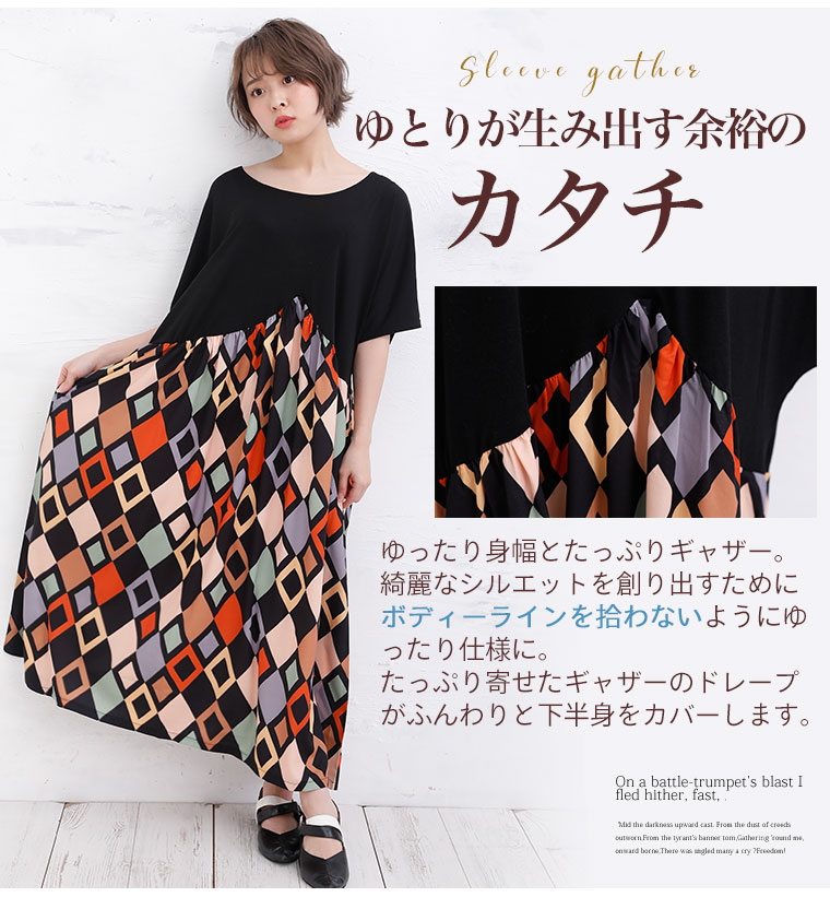 拘りの変形パターンとふんわりギャザーの柄がかわいいワンピース