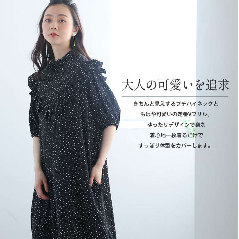 ゆったりデザインで楽な着心地 一枚着るだけですっぽり体型をカバーします。