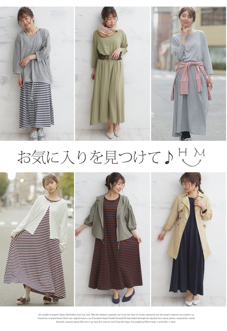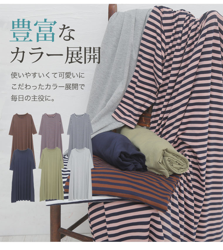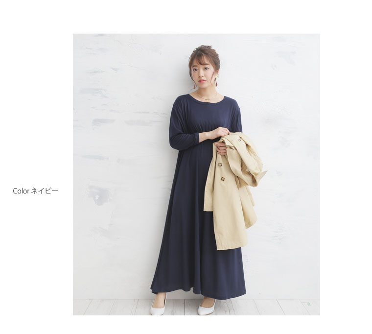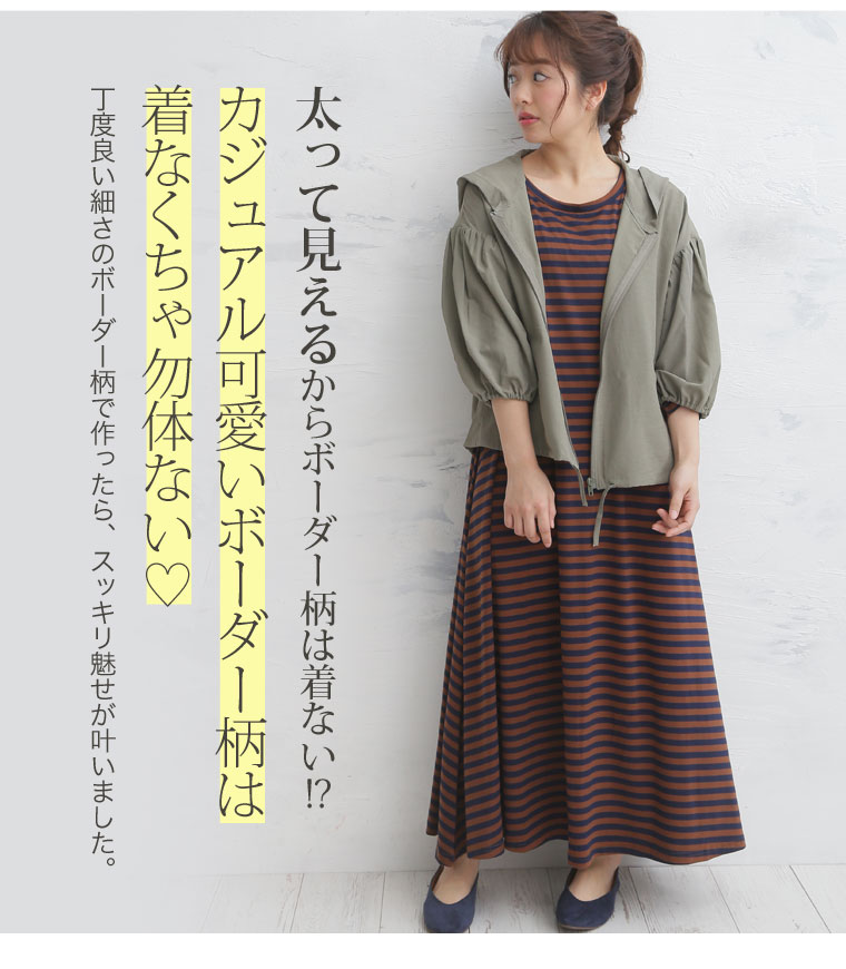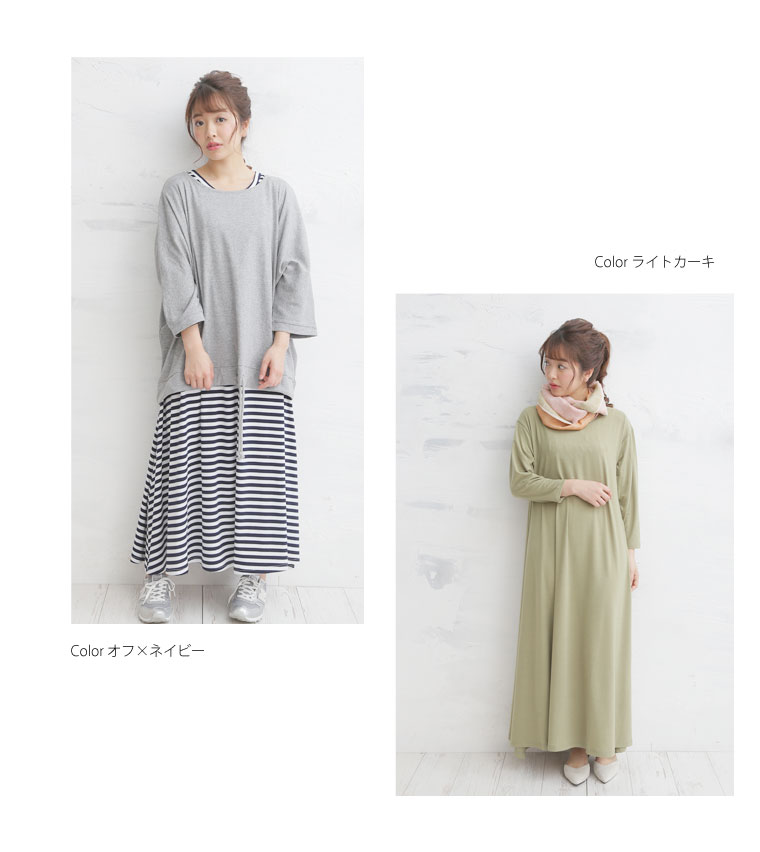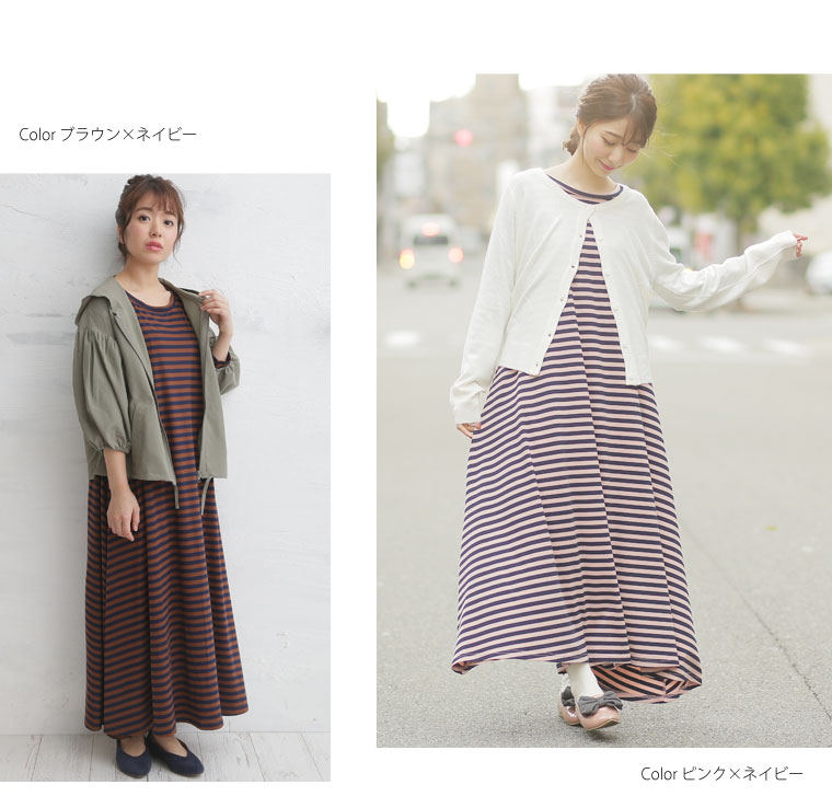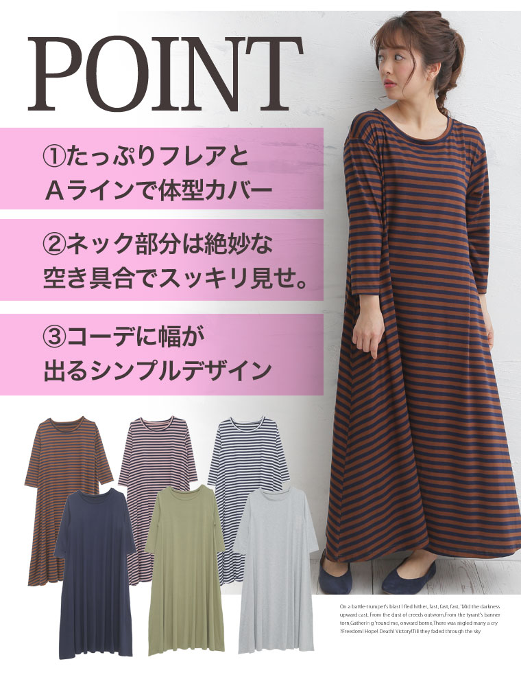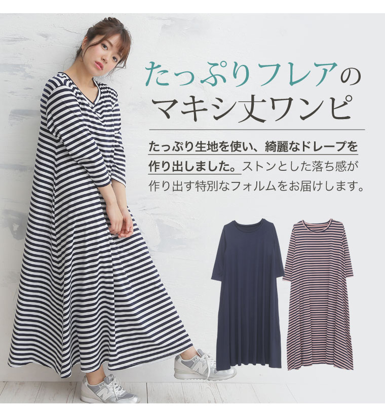 ゆるっと着こなす無地・ボーダーから選べるフレアマキシワンピース
