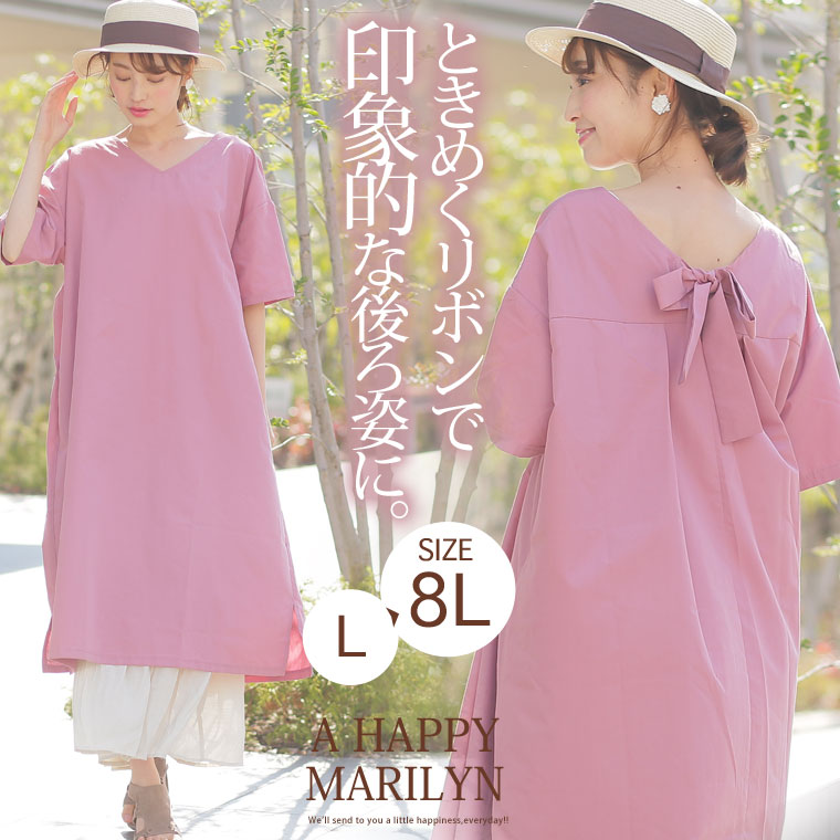 オリジナル ワンピ LL 3L 4L 5L 6L 7L 8L 夏 夏物 夏服 夏用 ぽっちゃり かわいい おしゃれ カジュアル 可愛い 大人 ガーリー ビッグサイズ 大人の可愛い バックリボン × 半袖 バックタック ワンピース