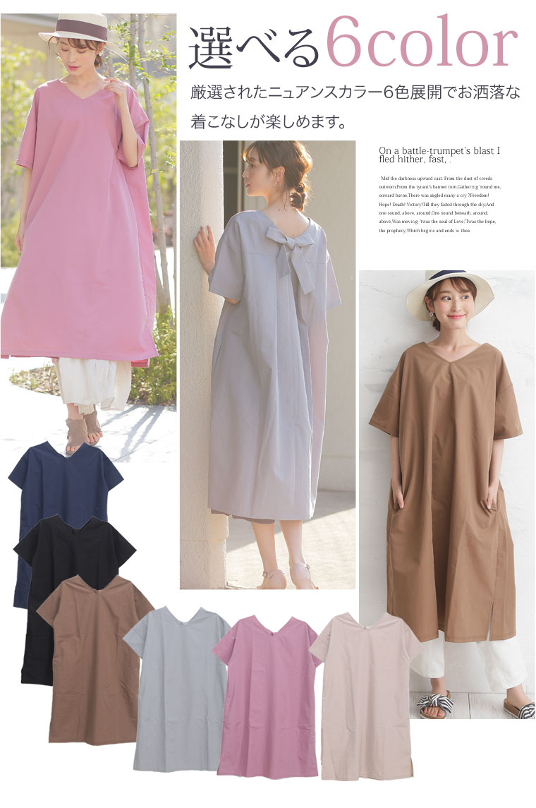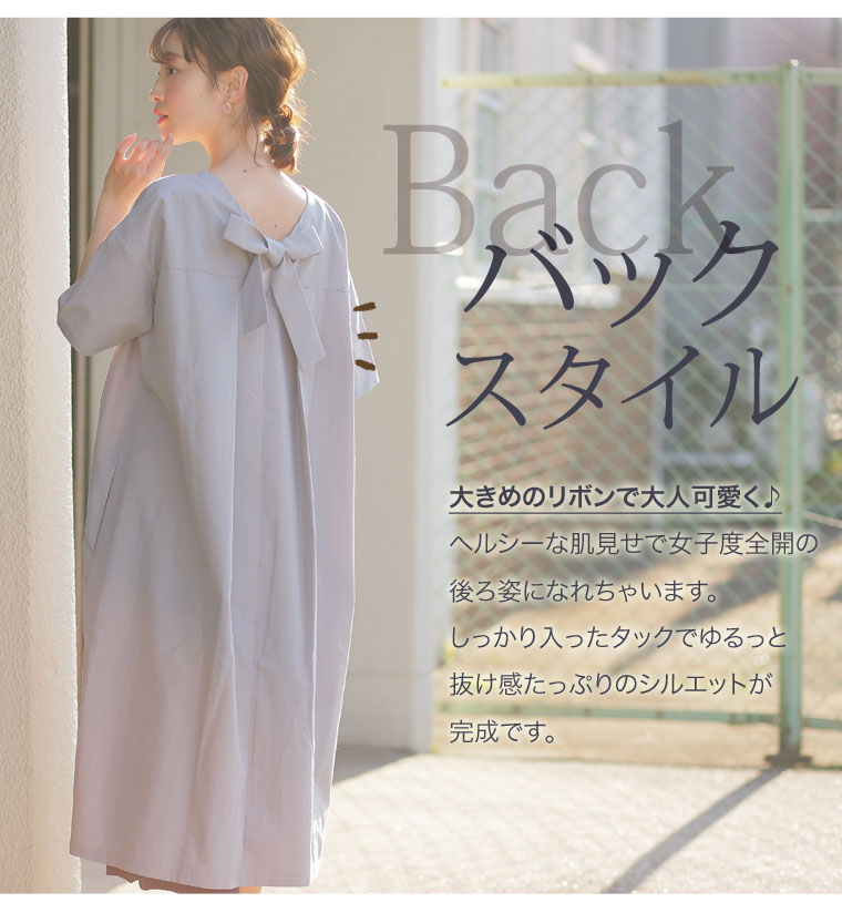 3. 大きいサイズ 大人の可愛い バックリボン × 半袖 バックタック ワンピース