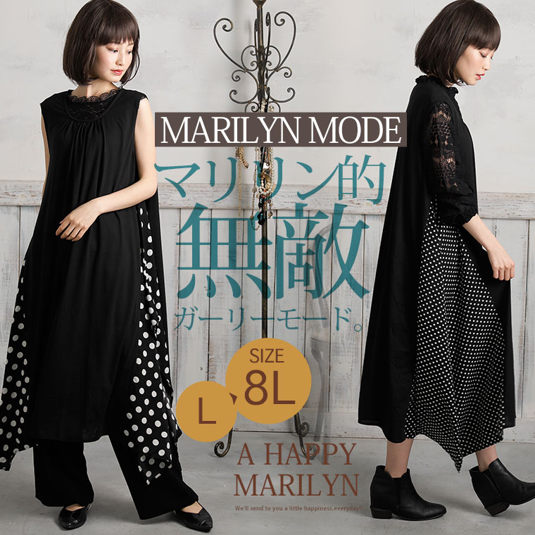 大きいサイズ マリリンモード ドット切替 イレヘムデザイン ワンピース