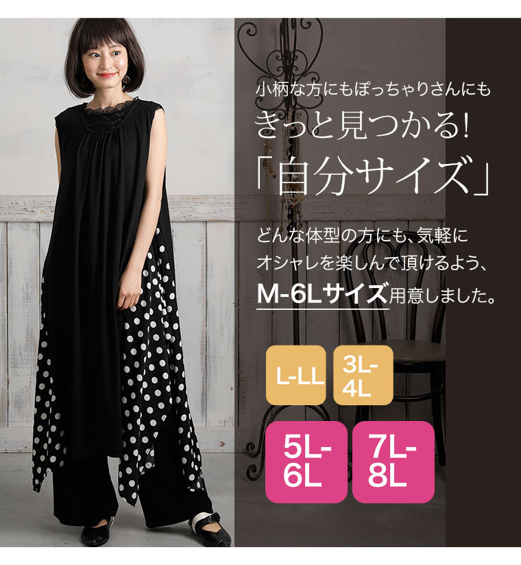 オリジナル ワンピ LL 3L 4L 5L 6L 7L 8L 春 春物 春服 夏 夏物 夏服 ぽっちゃり ゆったり お腹 太もも 胸周り お尻 腰周り かわいい おしゃれ マリリンモード ドット切替 イレヘムデザイン ワンピース