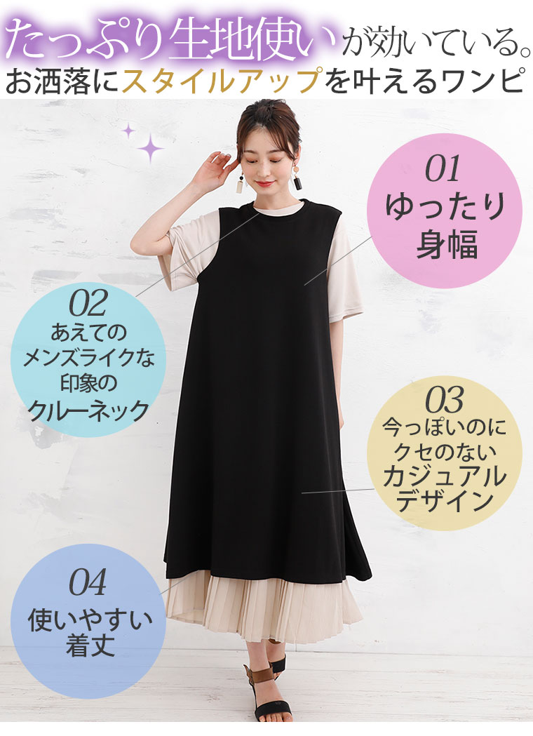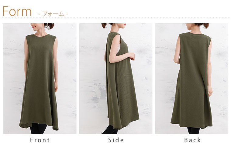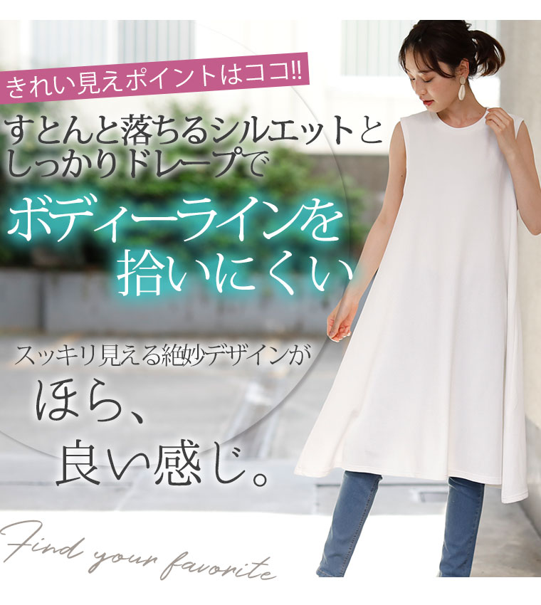 シンプルだからカジュアルにもキレイめにも着られる!エンボス加工ノースリーブフレアラインワンピース