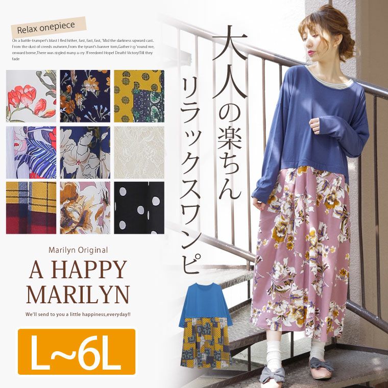 4. 大きいサイズ 大人の楽ちんリラックス 華やぎ 長袖 ドッキングワンピース | 大きいサイズの通販ならハッピーマリリン