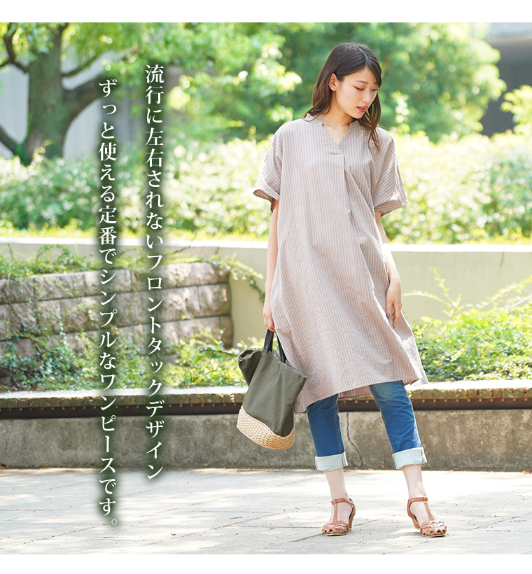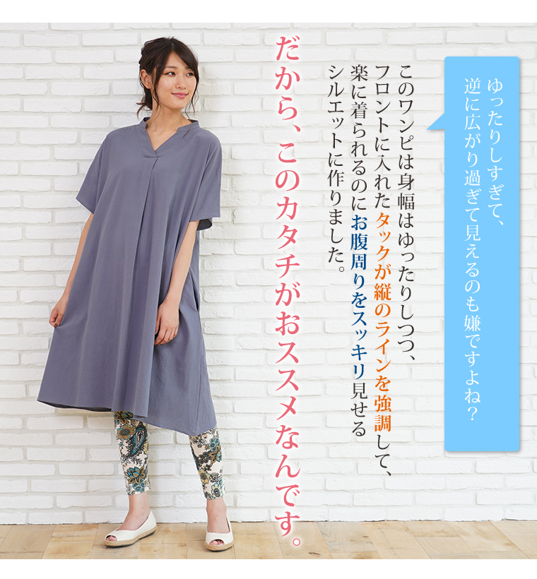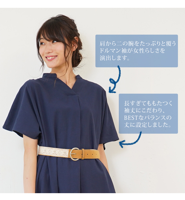 フロントタックでさり気なく細魅せ!着心地ゆったりドルマンワンピ