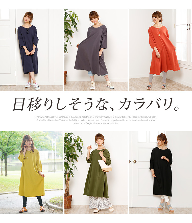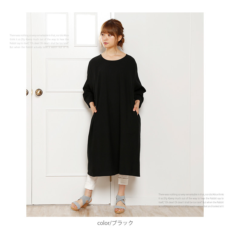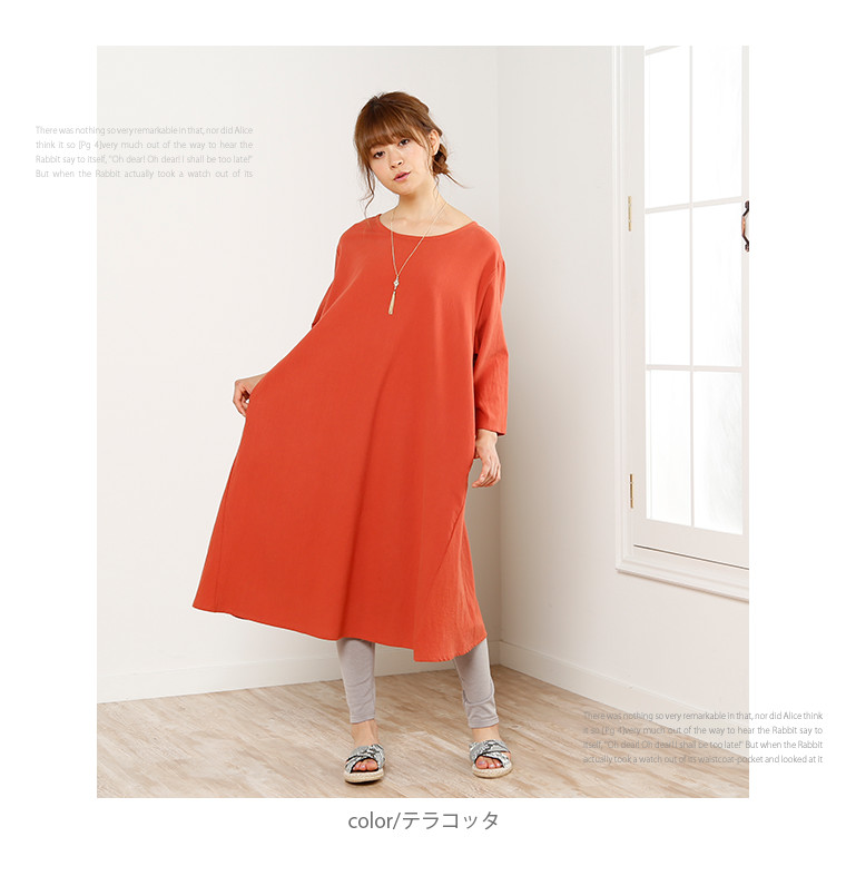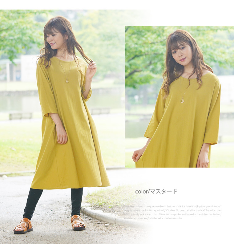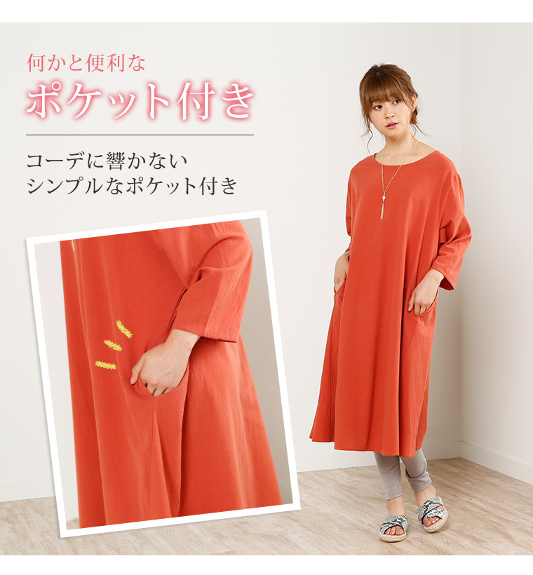 体のラインを拾わない適度なハリ感で体型カバー♪UネックAラインワンピース