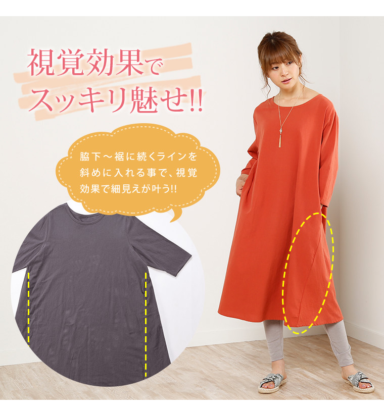 計算されたデザインで着痩せ効果◎!ナチュラルなコットン素材が嬉しいワンピです