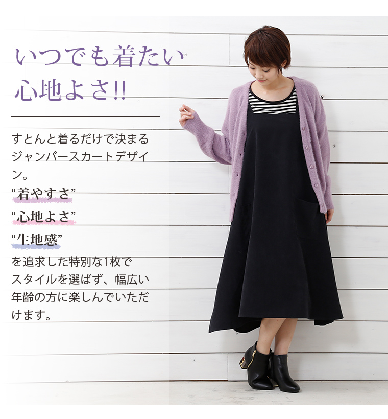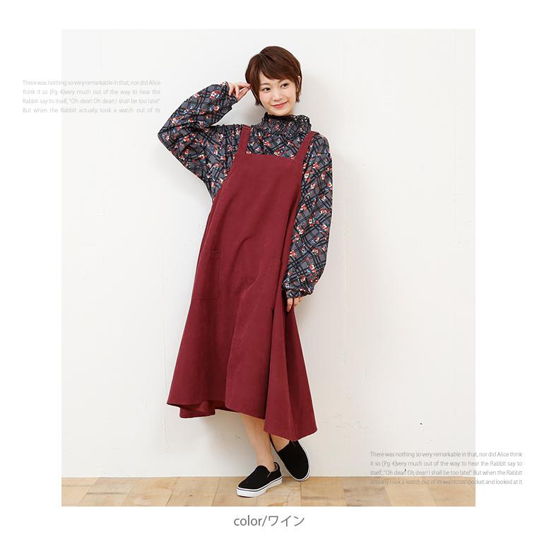 大人女子のおしゃれ秋モード!雰囲気たっぷりのピーチスキンエプロンワンピ