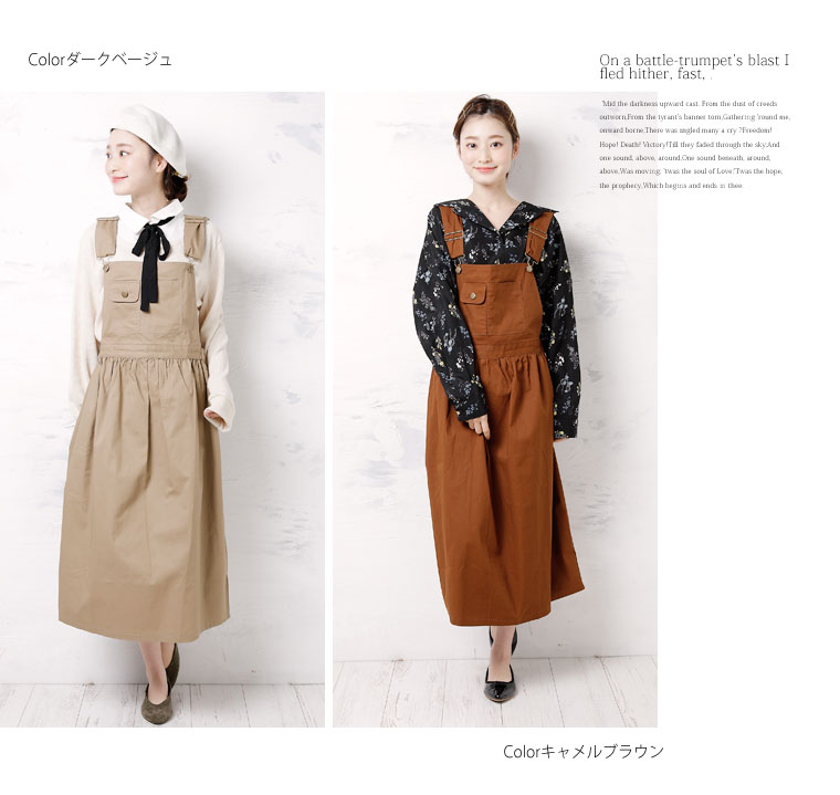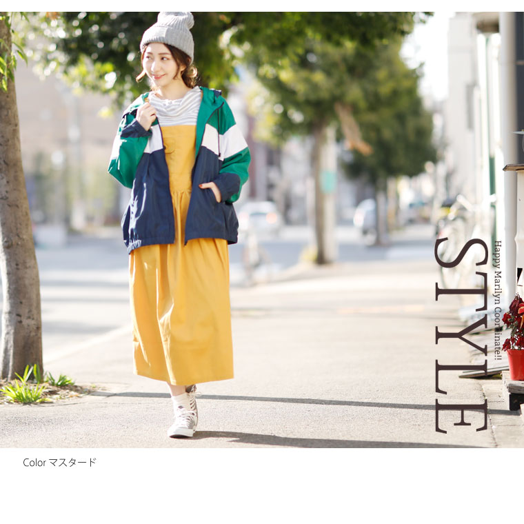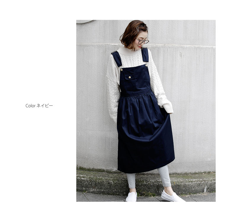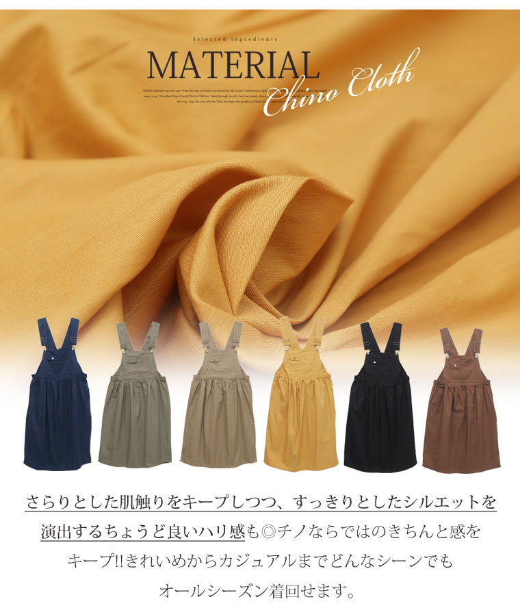 綿混チノ生地でカジュアルに着こなす。ゆったりAラインジャンパースカート