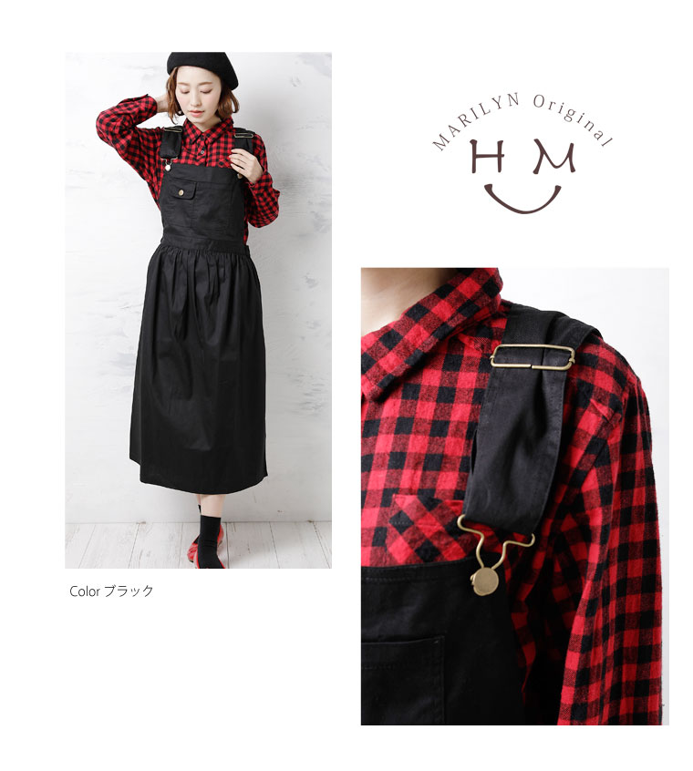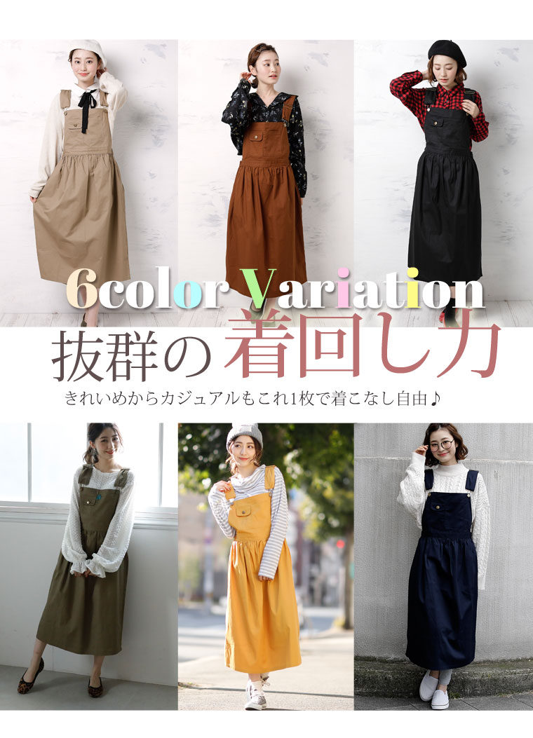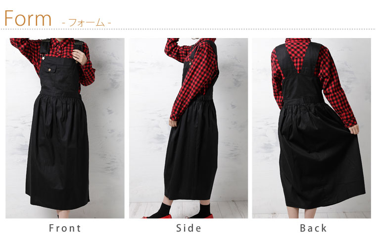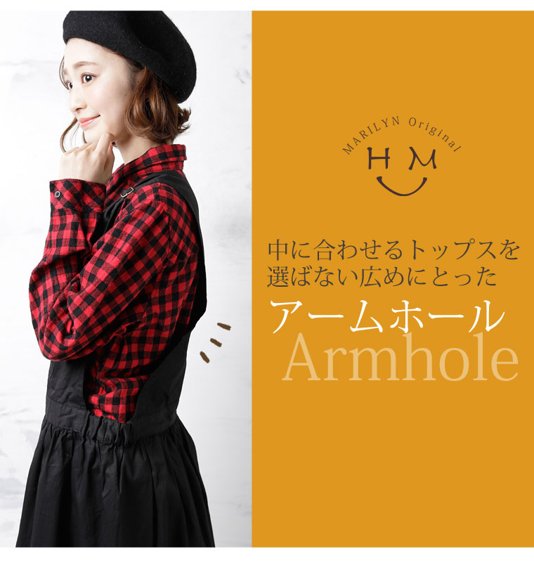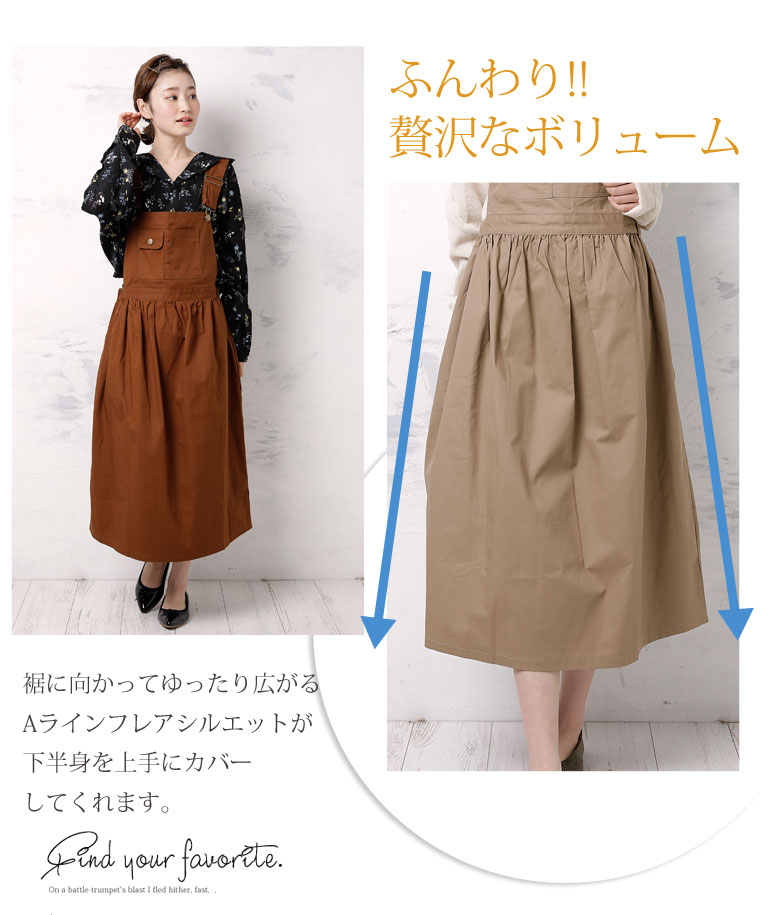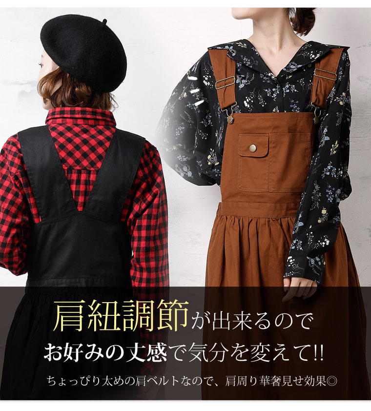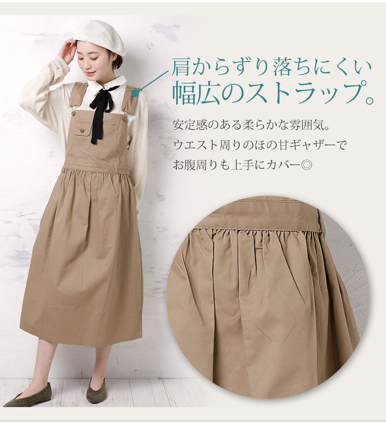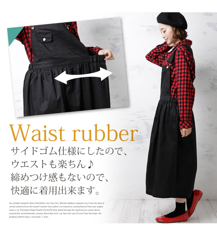ウエストゴムで程よくフィット。肩紐調節でバランスよくコーディネートが楽しめます。
