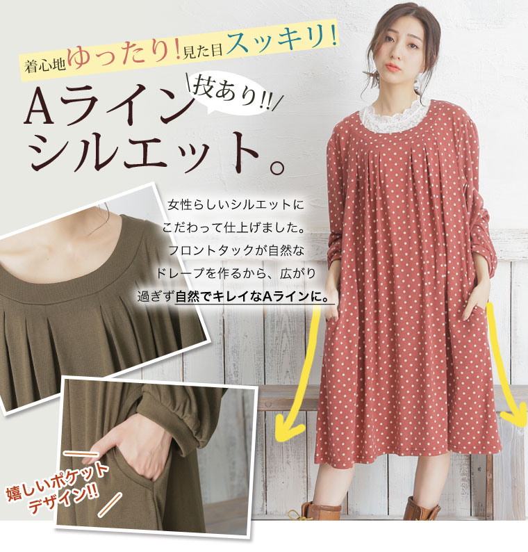 フロントタックでふんわりとしたシルエットに。体型カバーが叶うAラインで女性らしく着こなして。