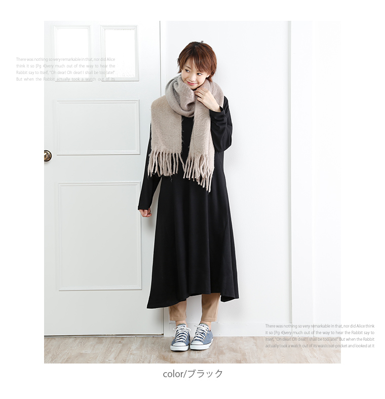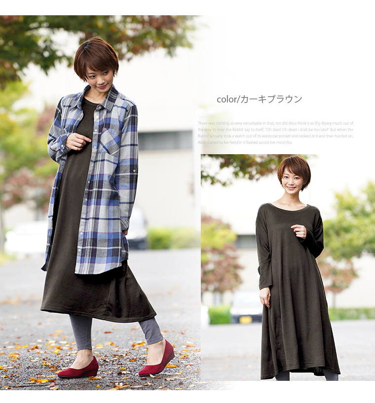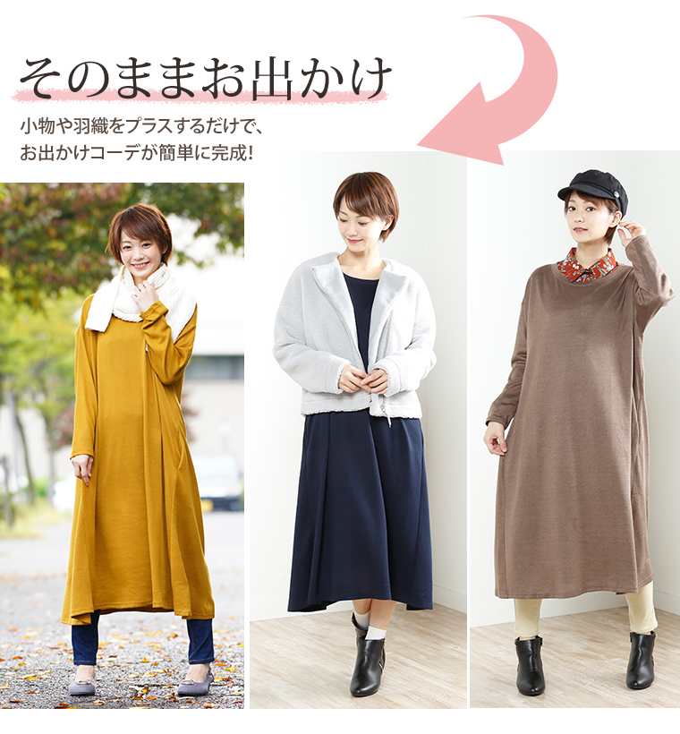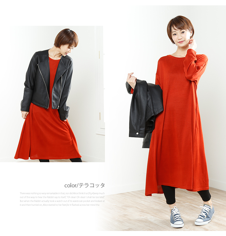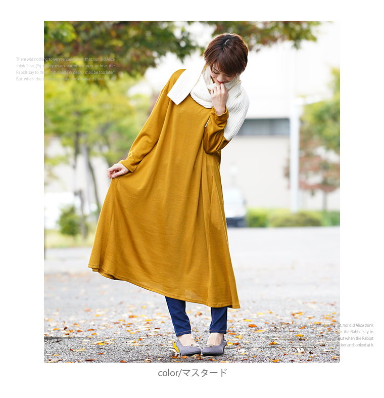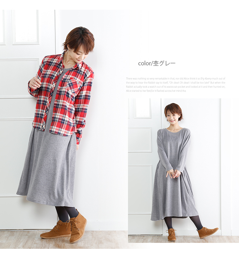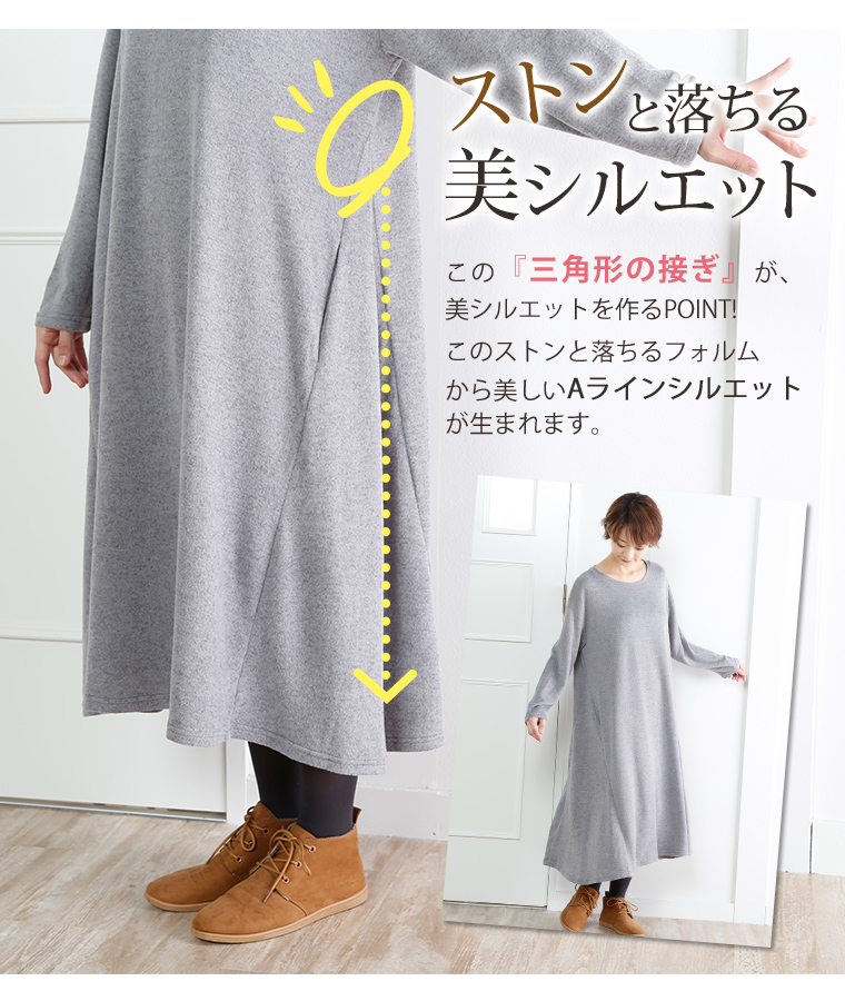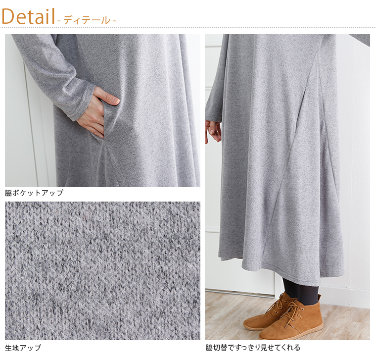 豊富なカラバリからお気に入りを選んで♪薄起毛脇切替Aラインフレアワンピース