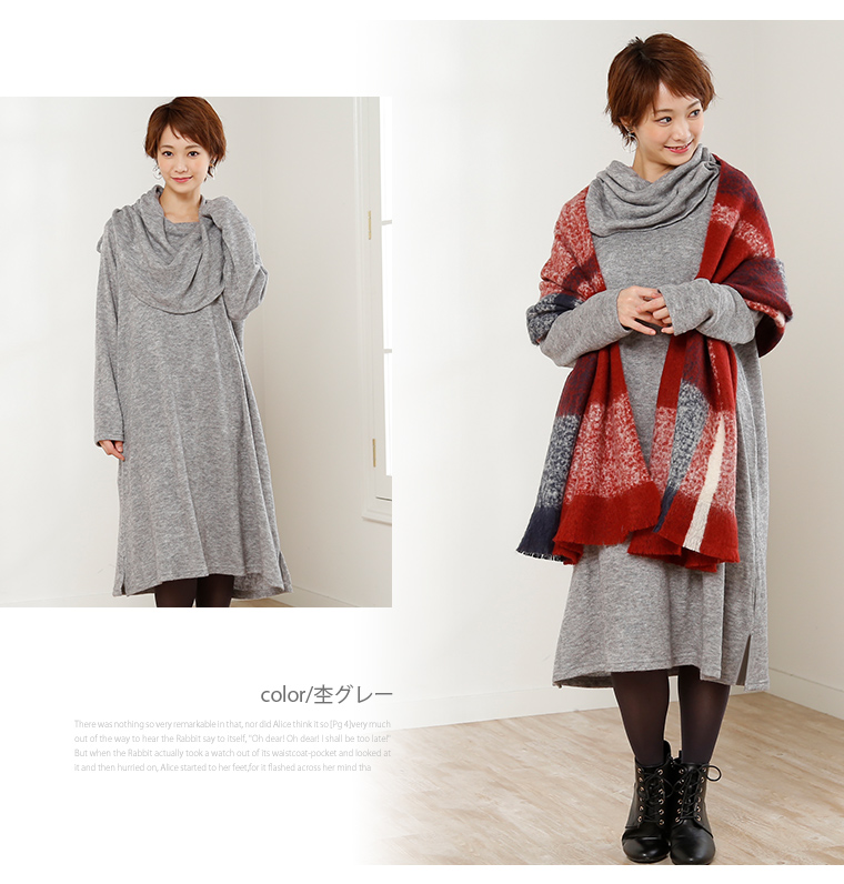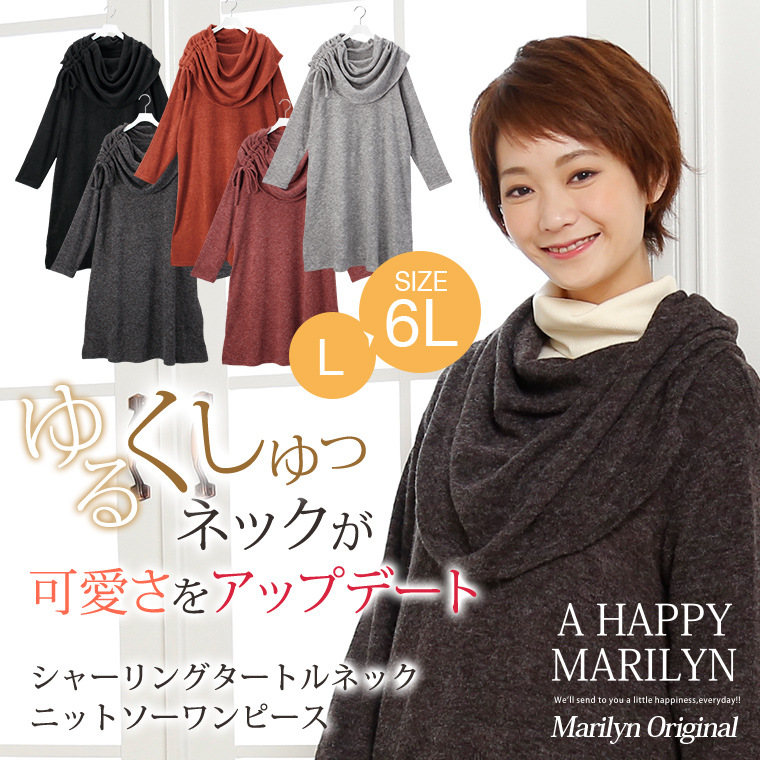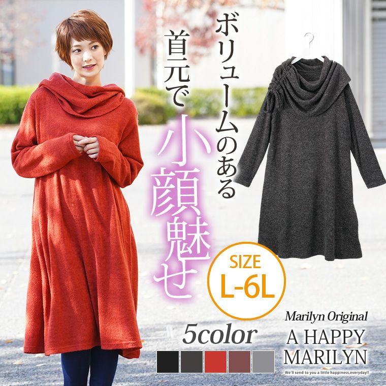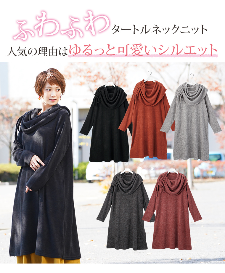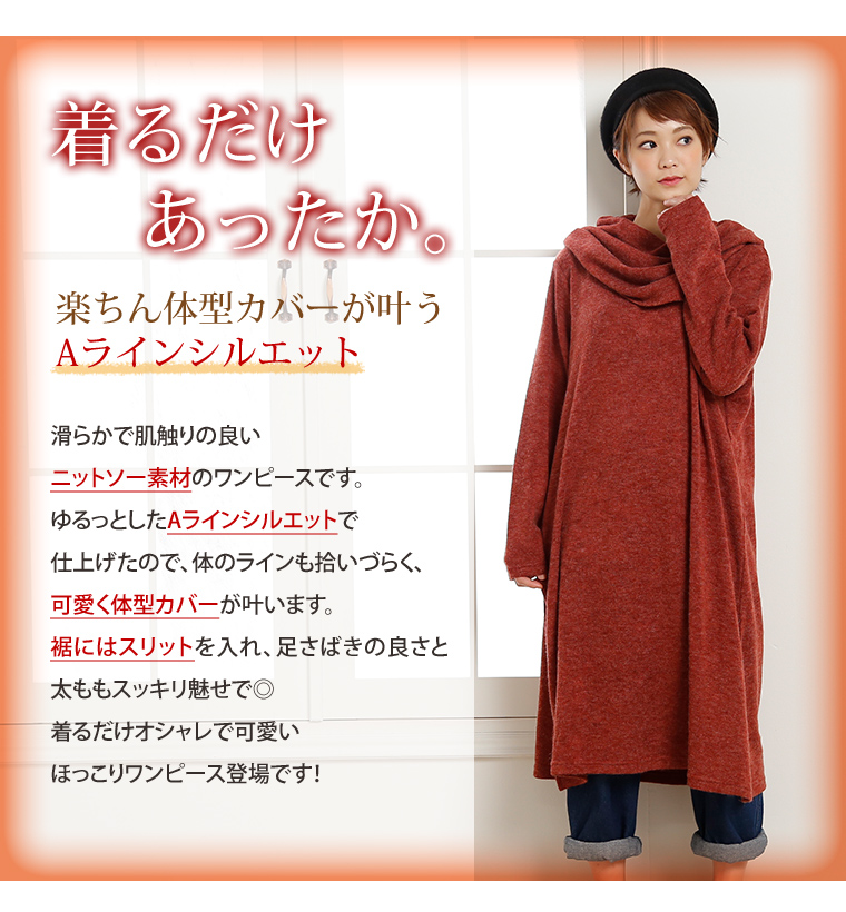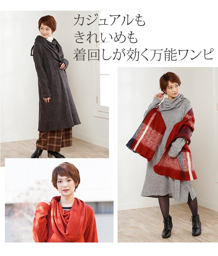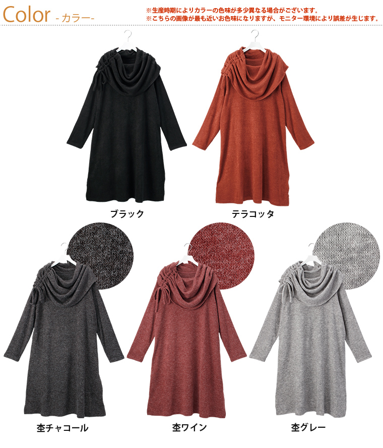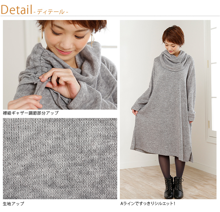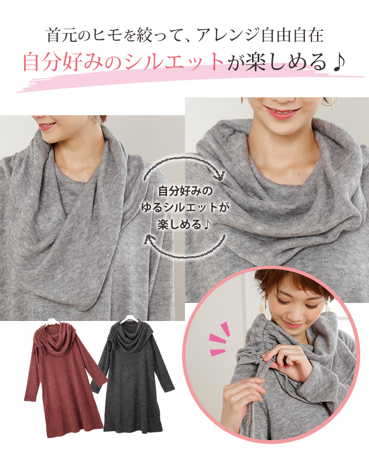 ギャザー分量調節可能!キュートなニットソーワンピース