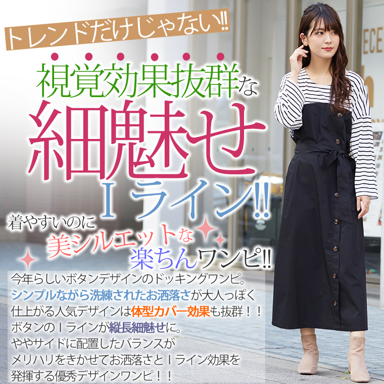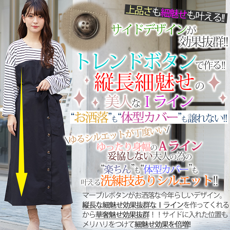 旬のボタンデザインでIラインのスッキリ細魅せワンピ