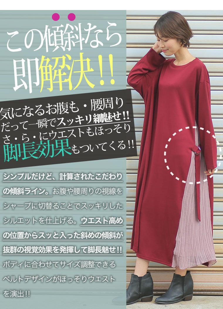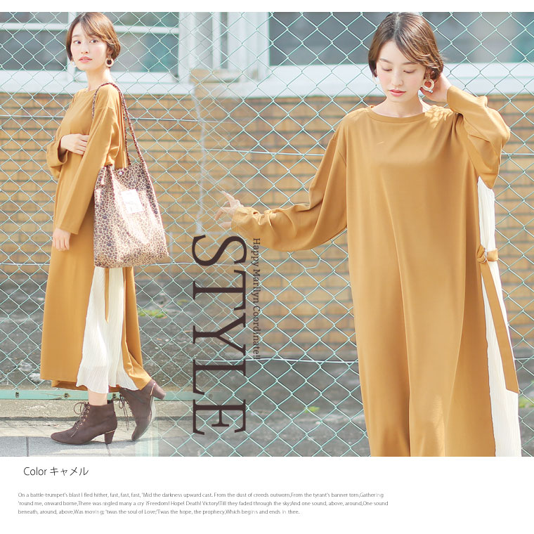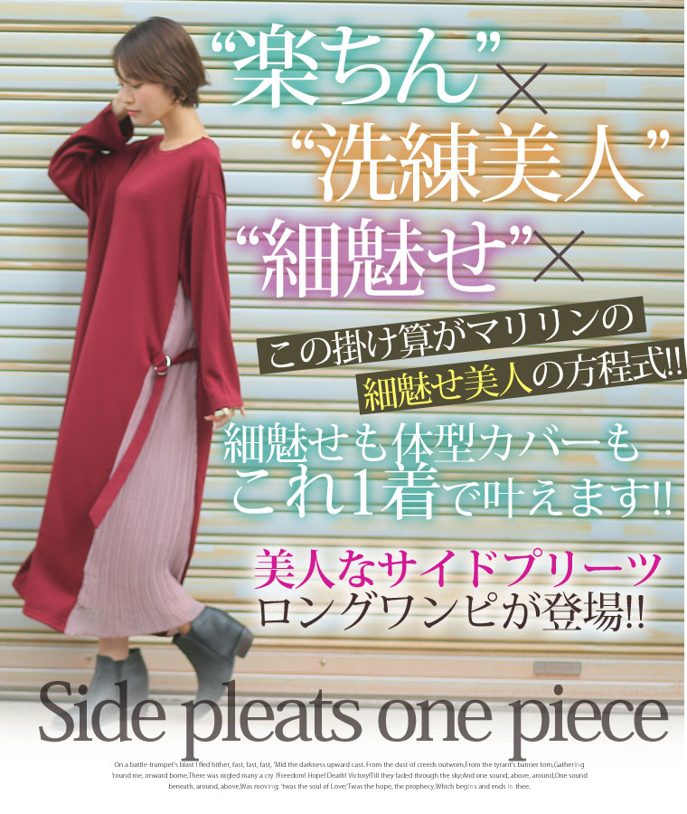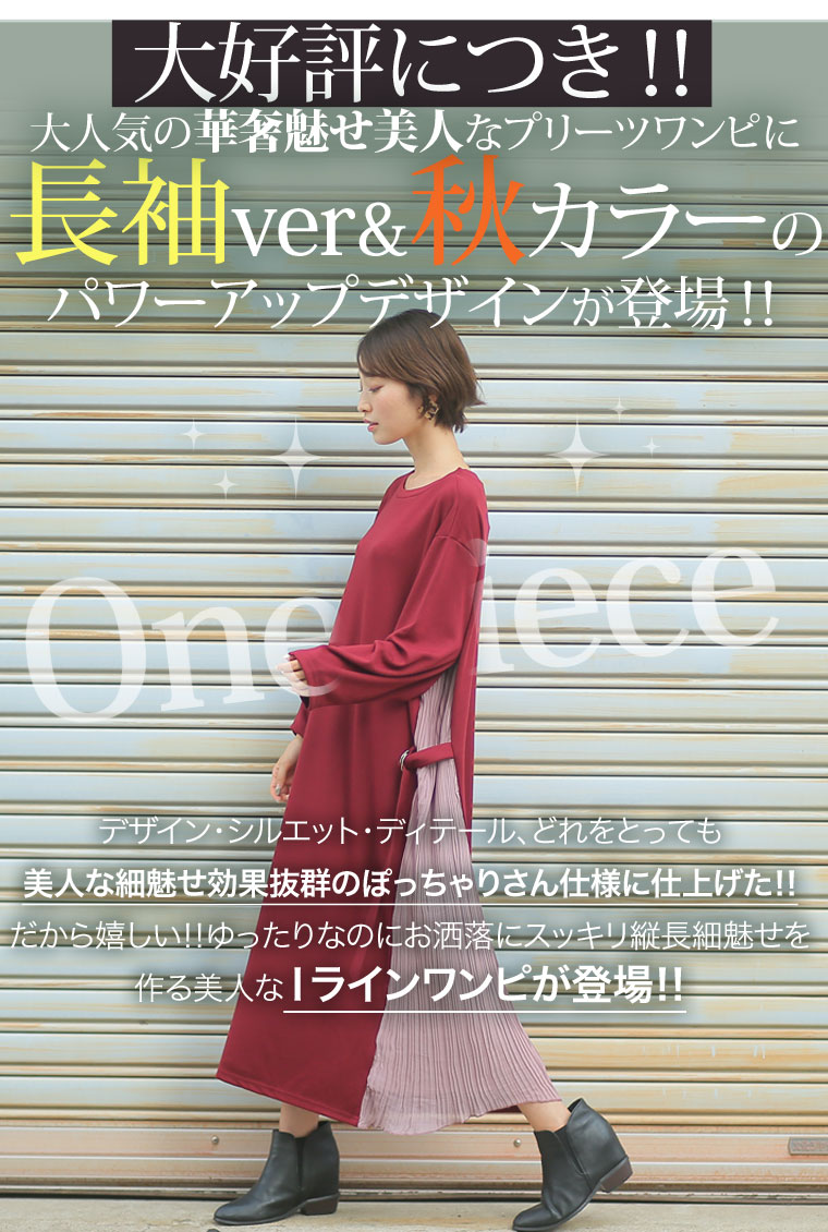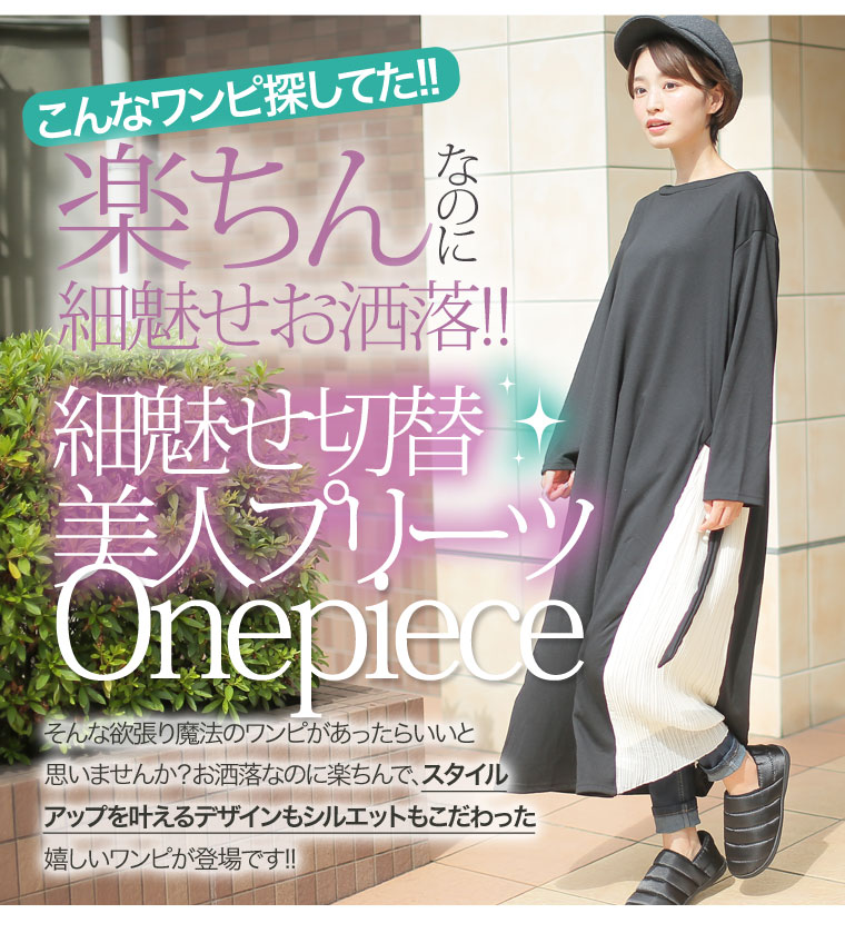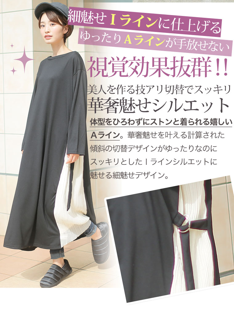 スッキリ縦長ラインを演出するサイドプリーツ切替ワンピース