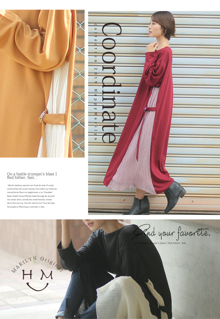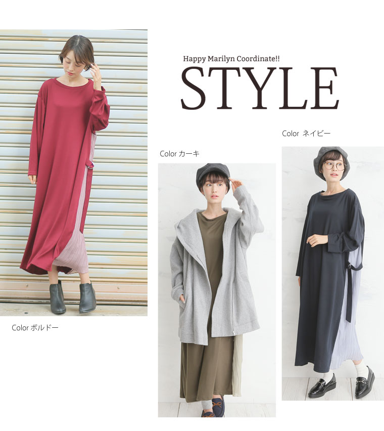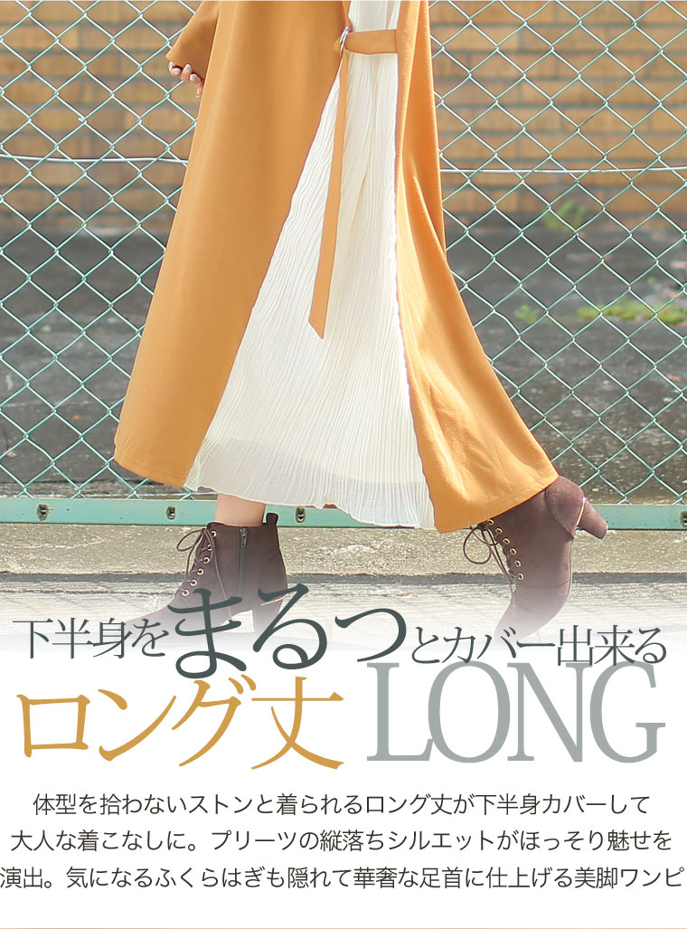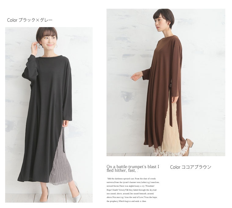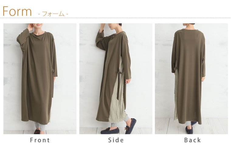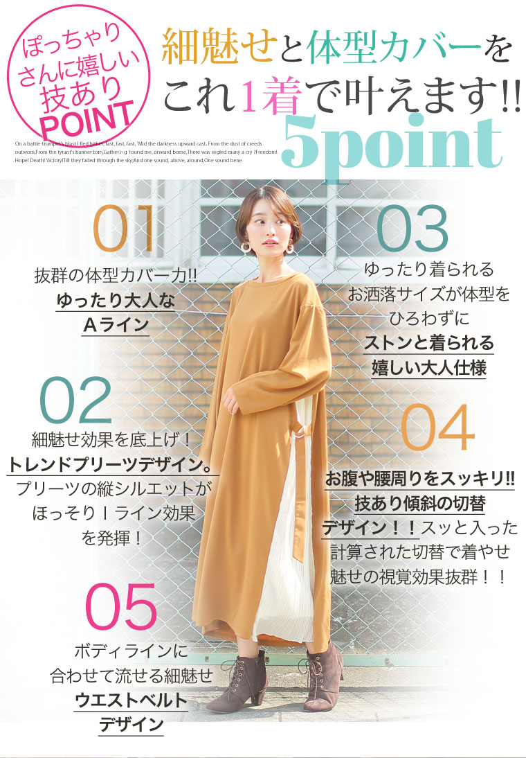 スッキリ縦長ラインを演出するサイドプリーツ切替ワンピース
