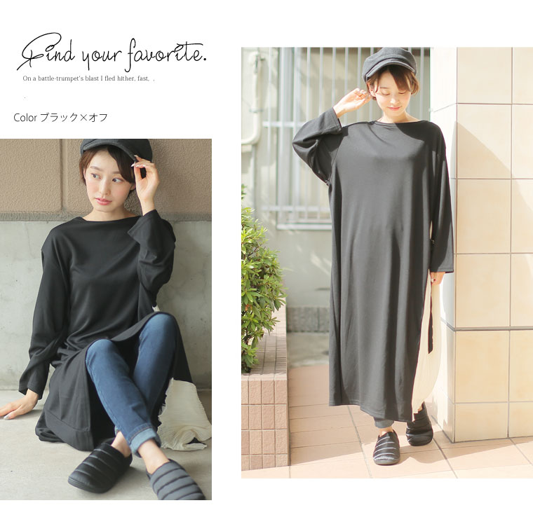 トレンド感のあるデザインで1枚でお洒落な着こなしに。ゆったりなのにほっそり魅せが叶う美人ワンピースです。
