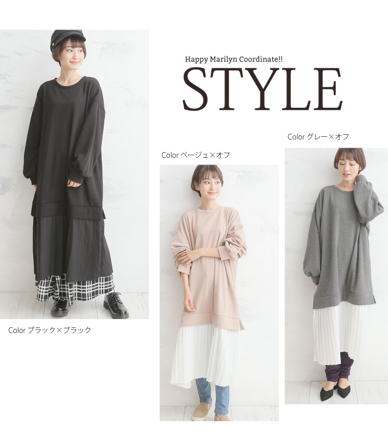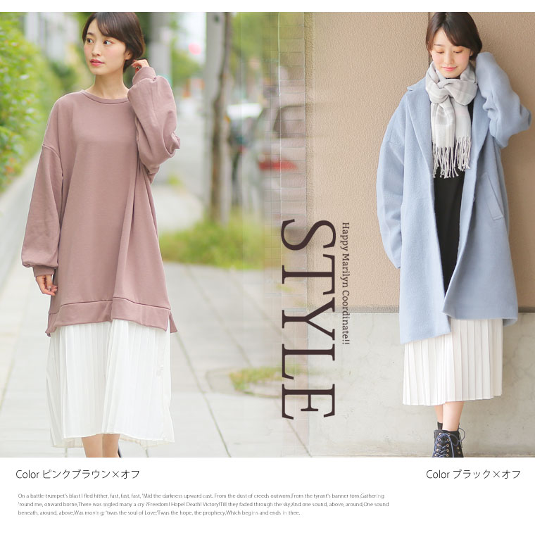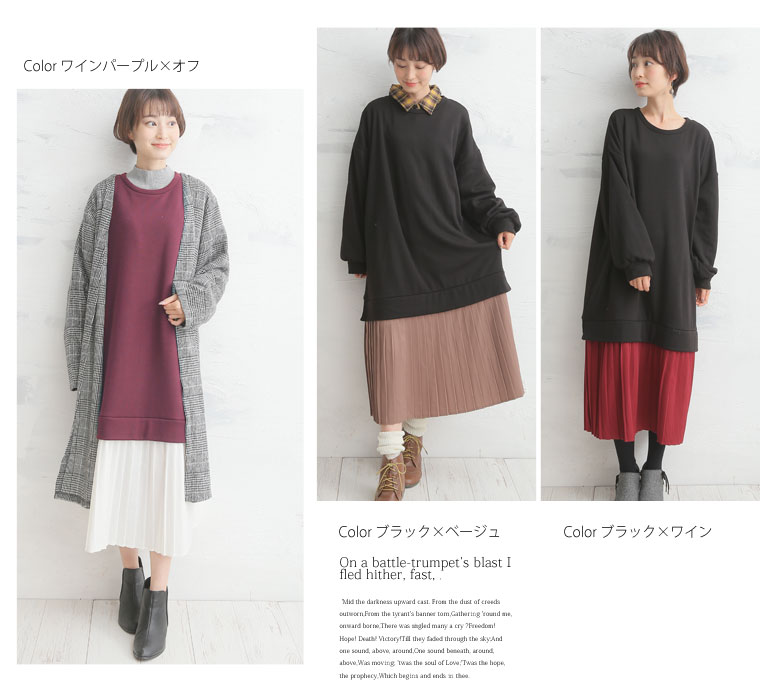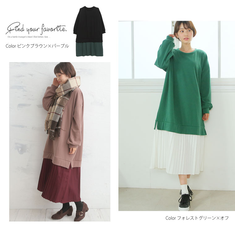 裏シャギーでほっこり暖か♪スタイルアップの叶う切り替えプリーツワンピース