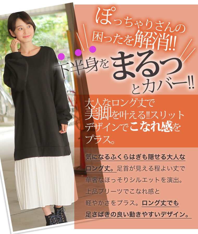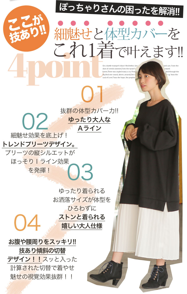 メリハリの効いた大人のプリーツデザインですっぽりと体型カバー◎