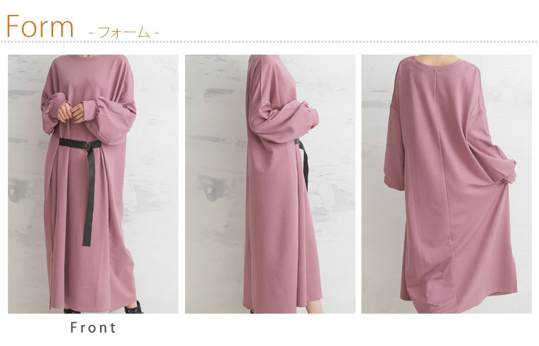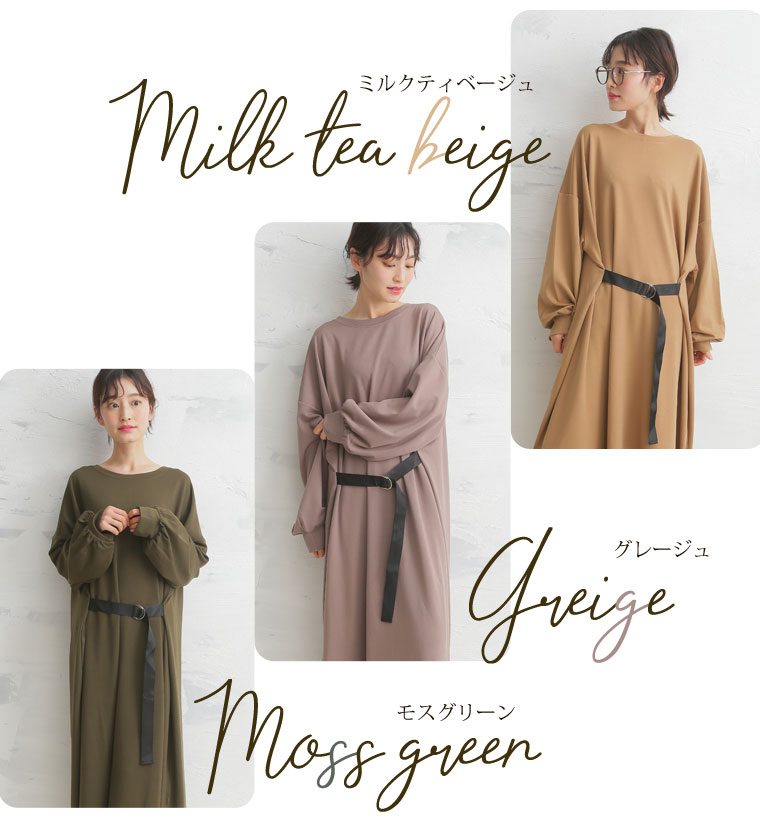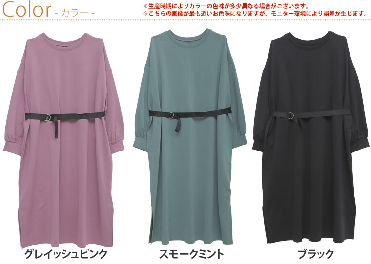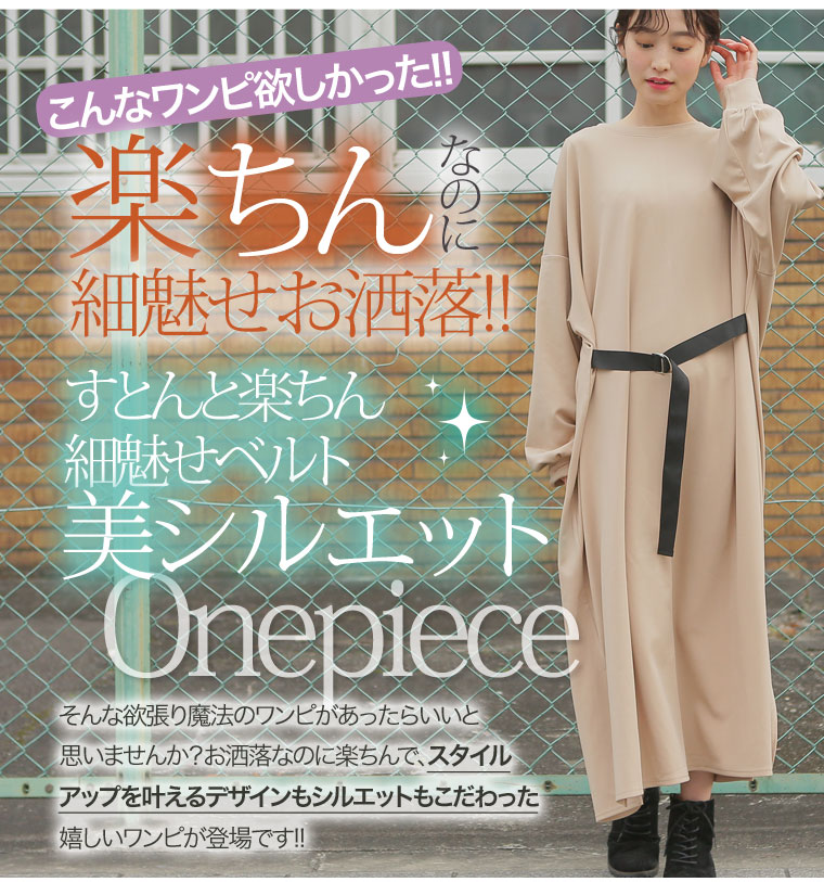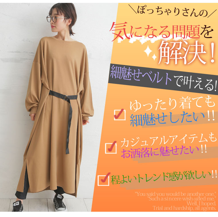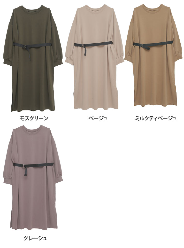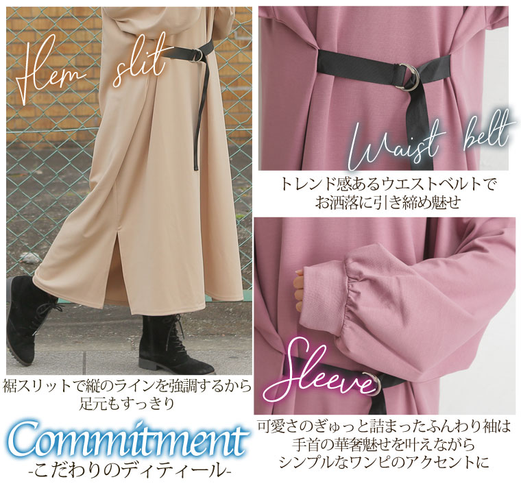 ウエストベルトボリュームスリーブスリット入りポンチワンピース