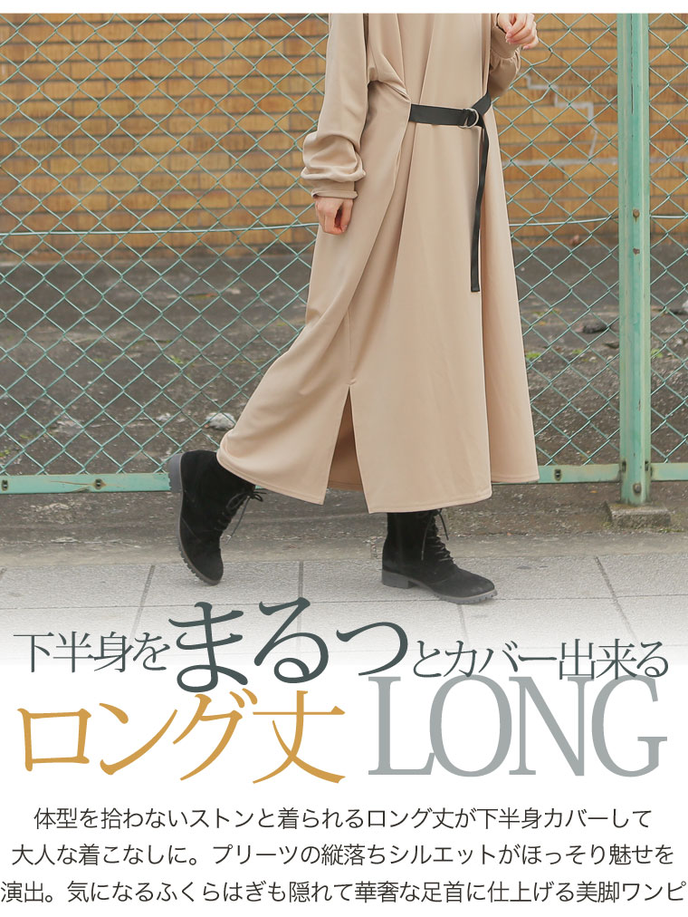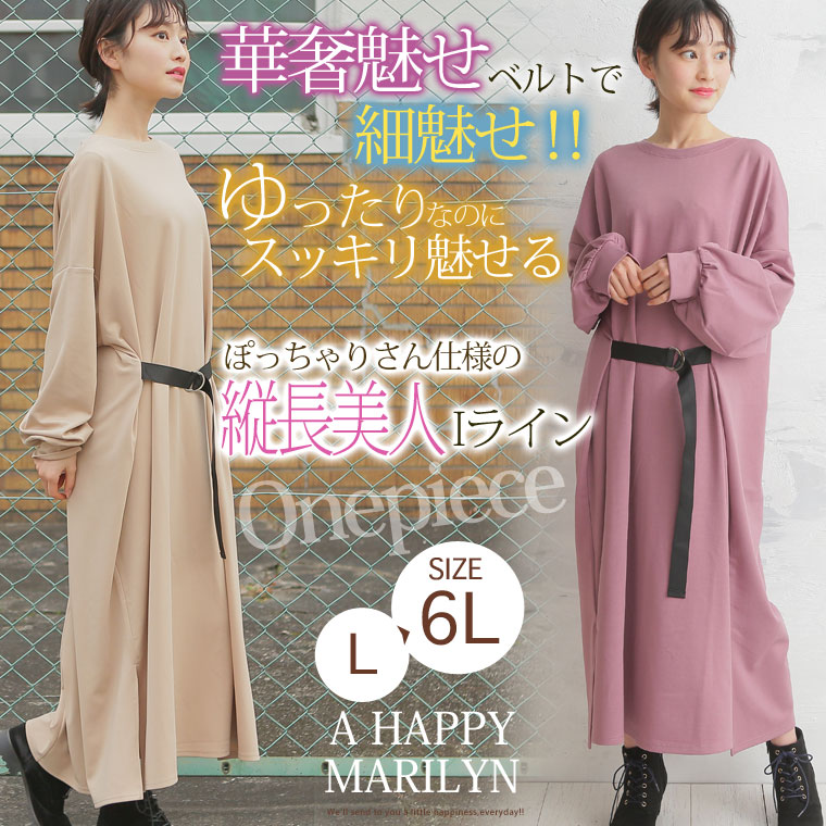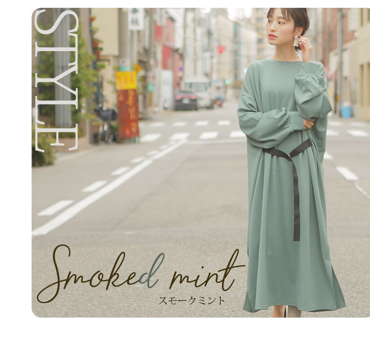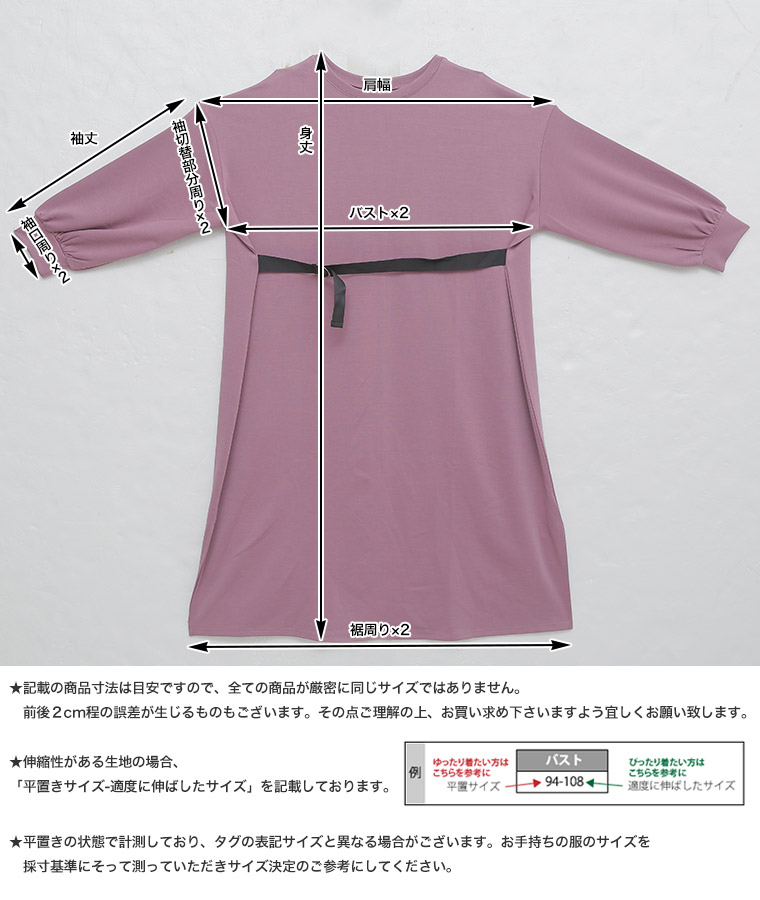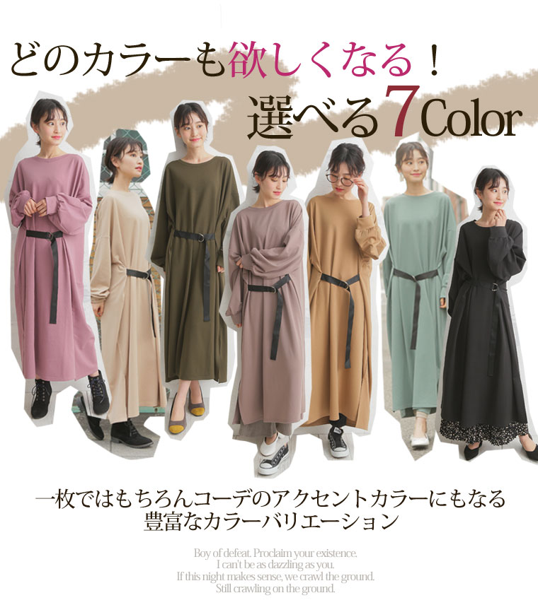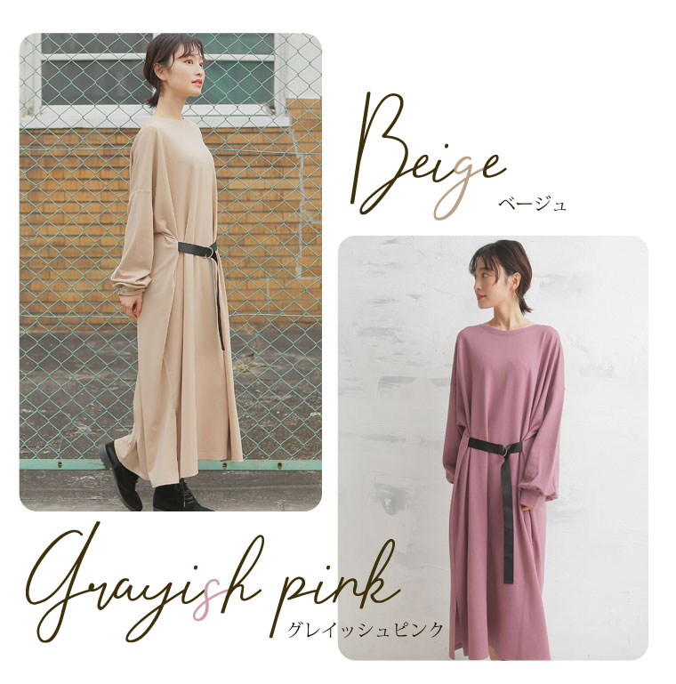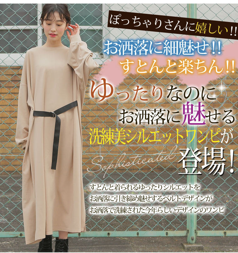 ウエストベルトボリュームスリーブスリット入りポンチワンピース