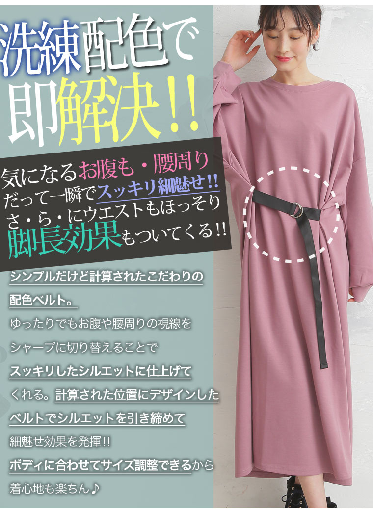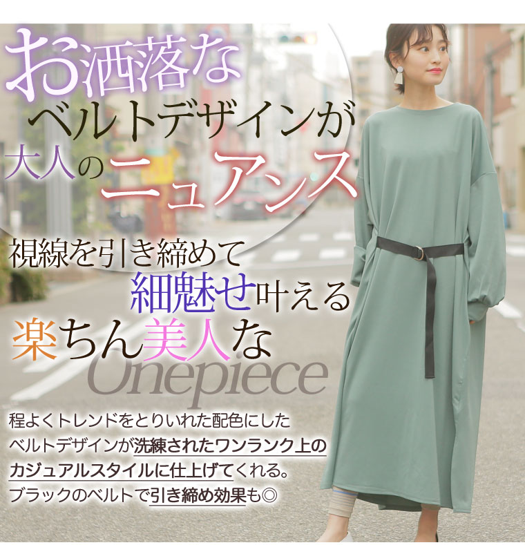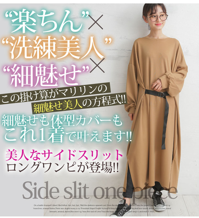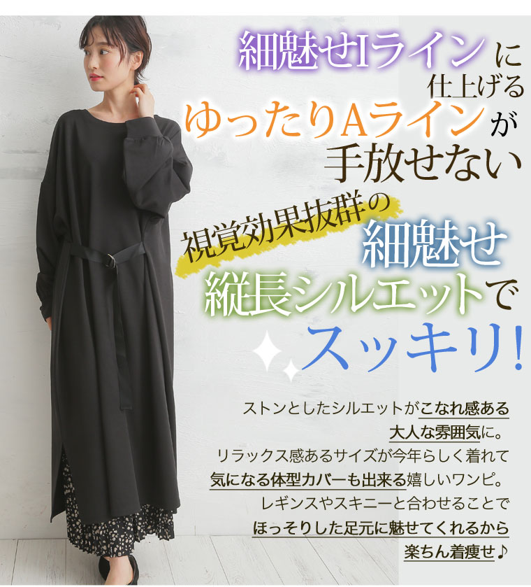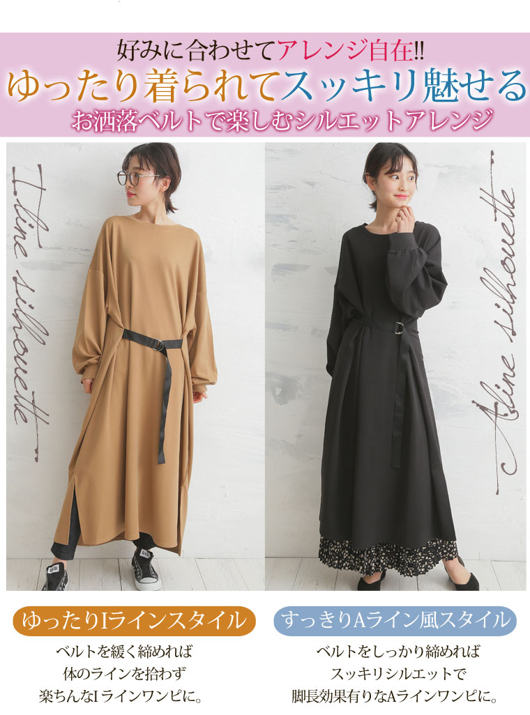 引き締めカラーのウエストベルトで2つのシルエットが楽しめる♪サイドスリットでこなれ感を出しながらスッキリ魅せ◎