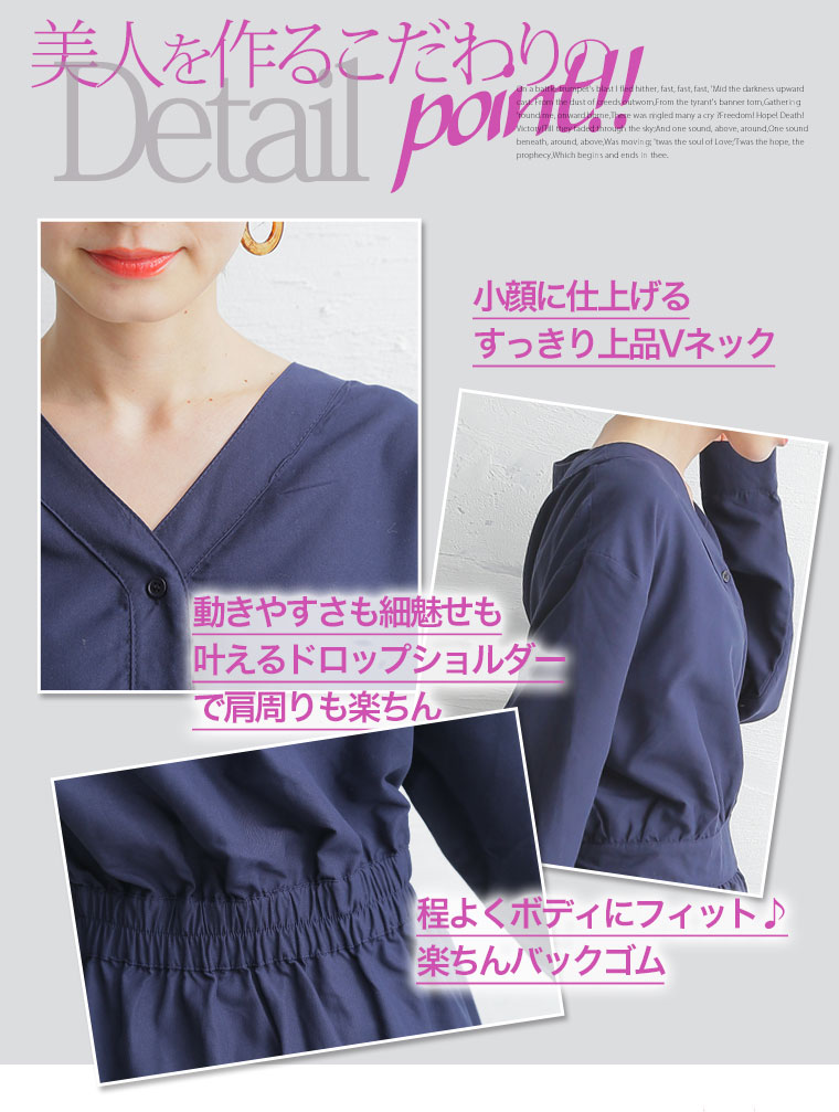 すっきりとした縦長ラインでお洒落スタイルに!!Vネックでデコルテキレイ魅せ。