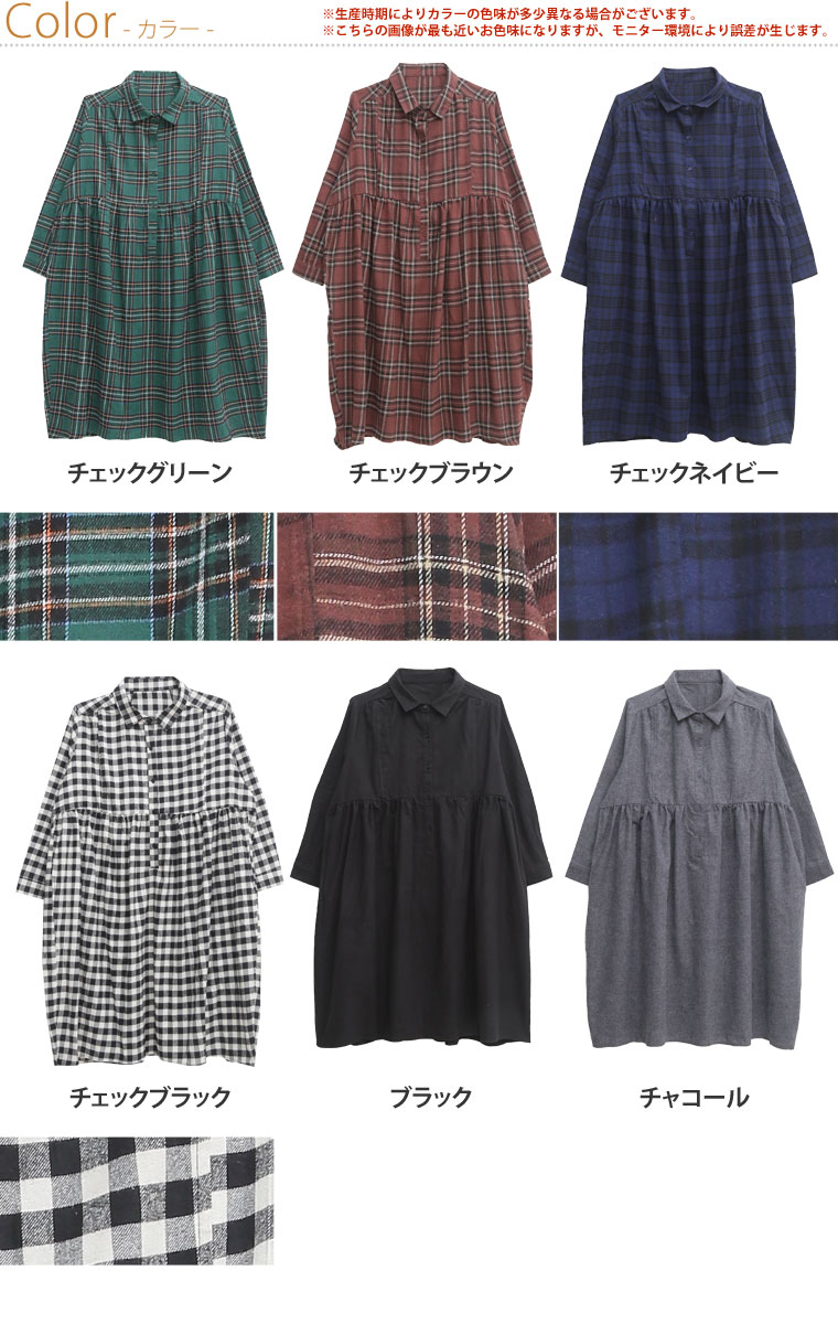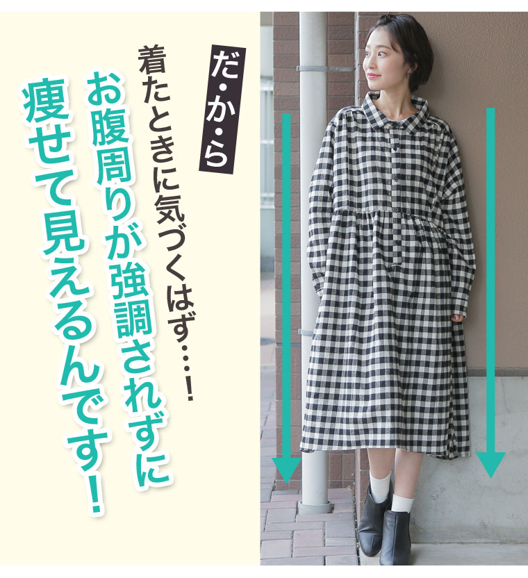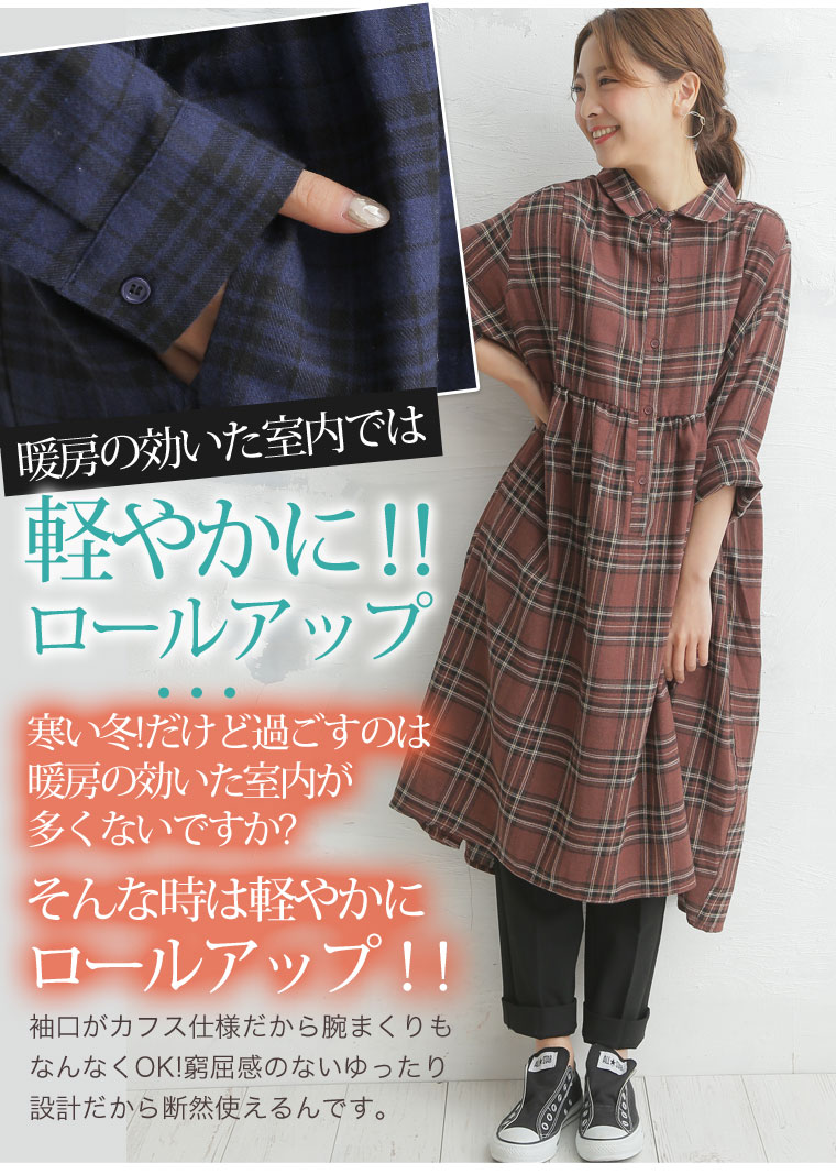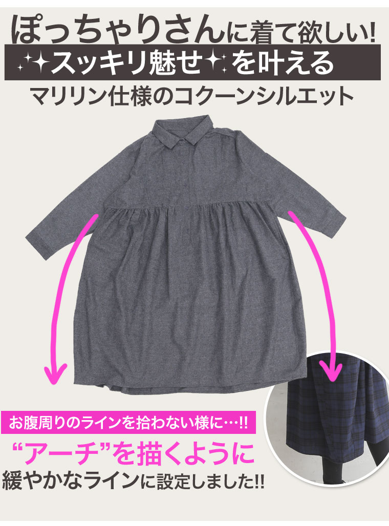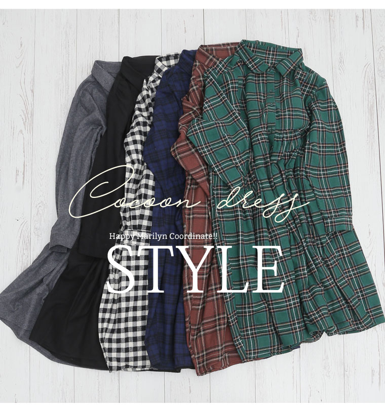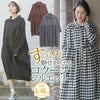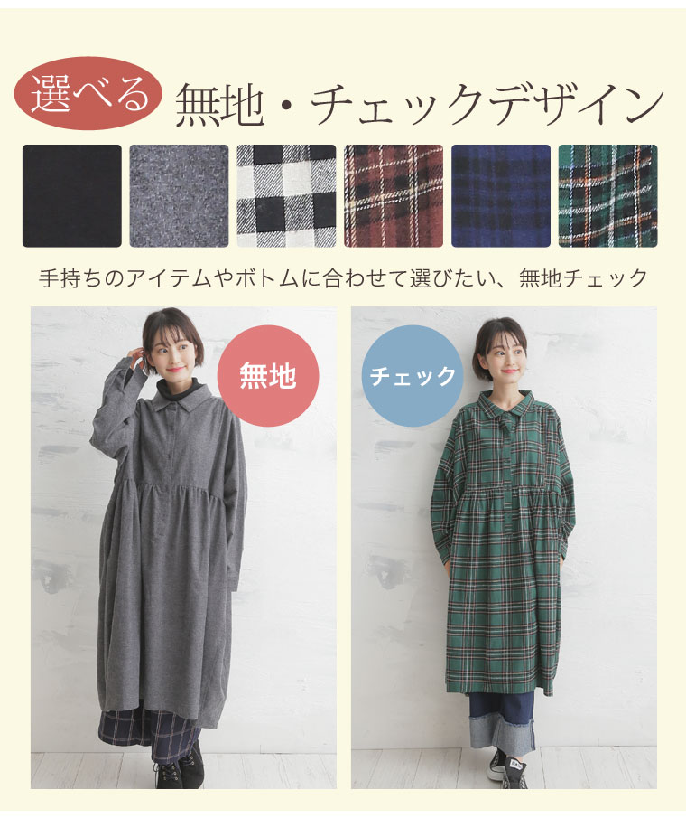 無地とチェックから選べる!!ゆったりだけどすっきり着こなすコクーンワンピース