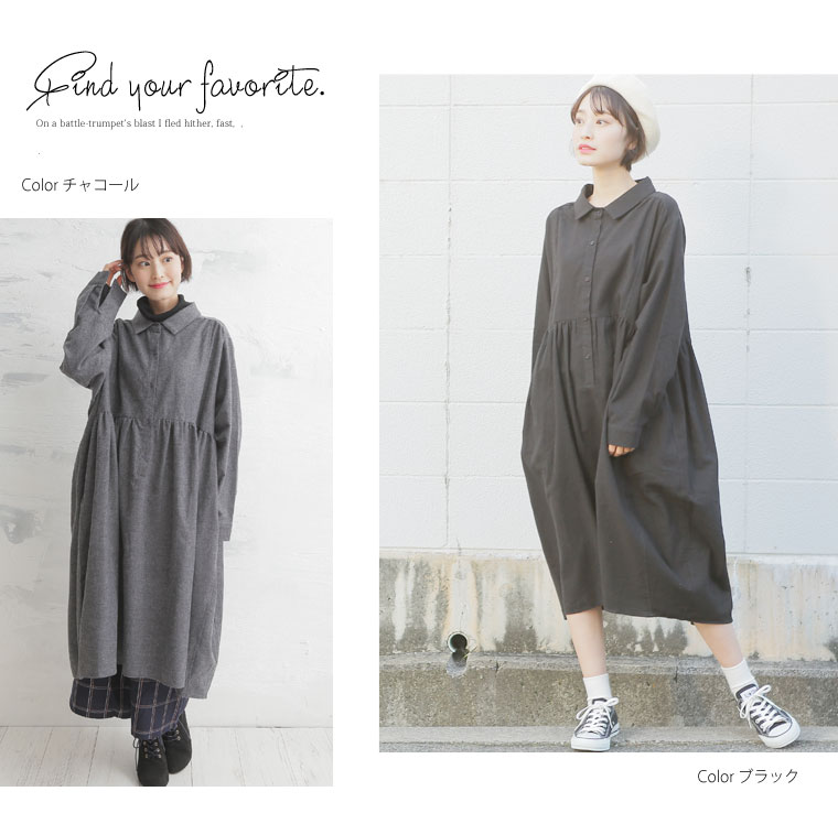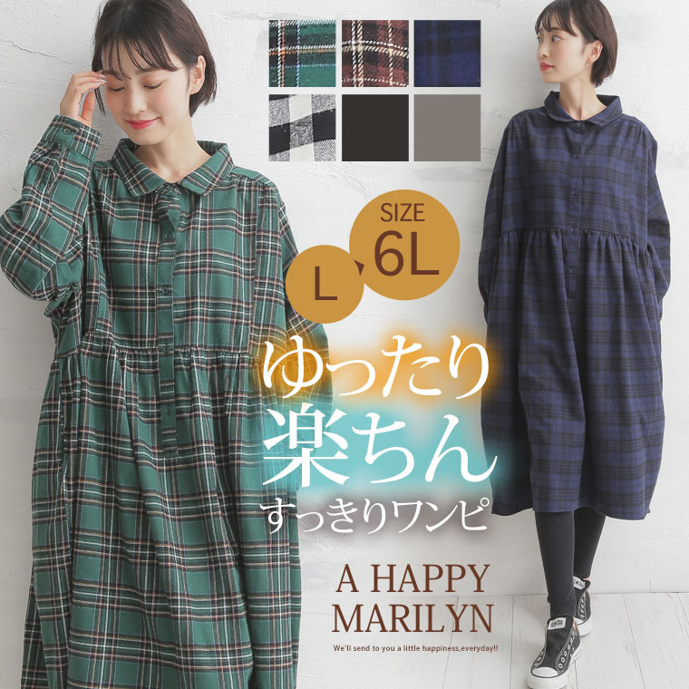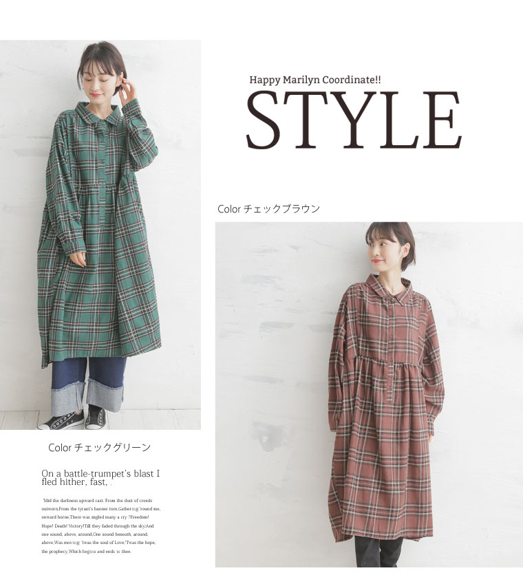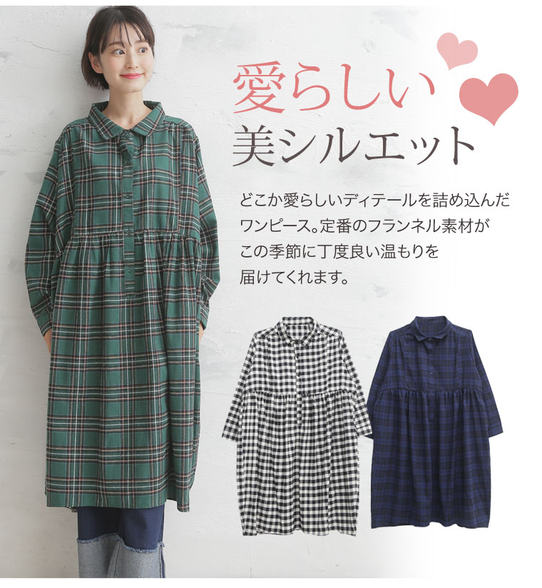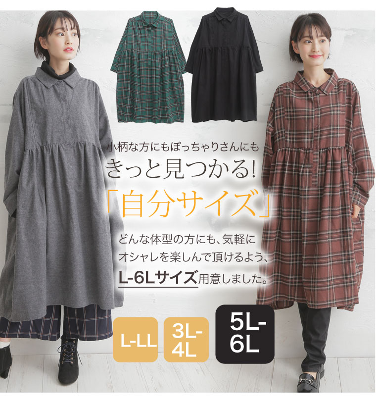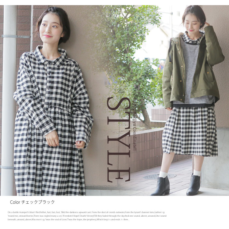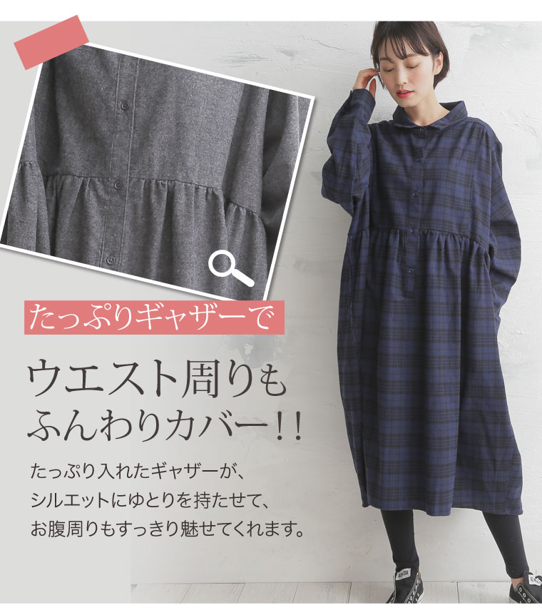 無地とチェックから選べる!!ゆったりだけどすっきり着こなすコクーンワンピース