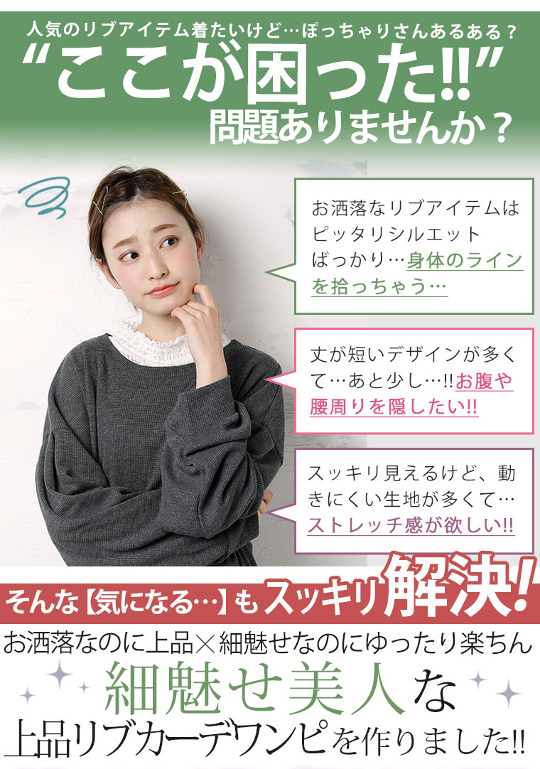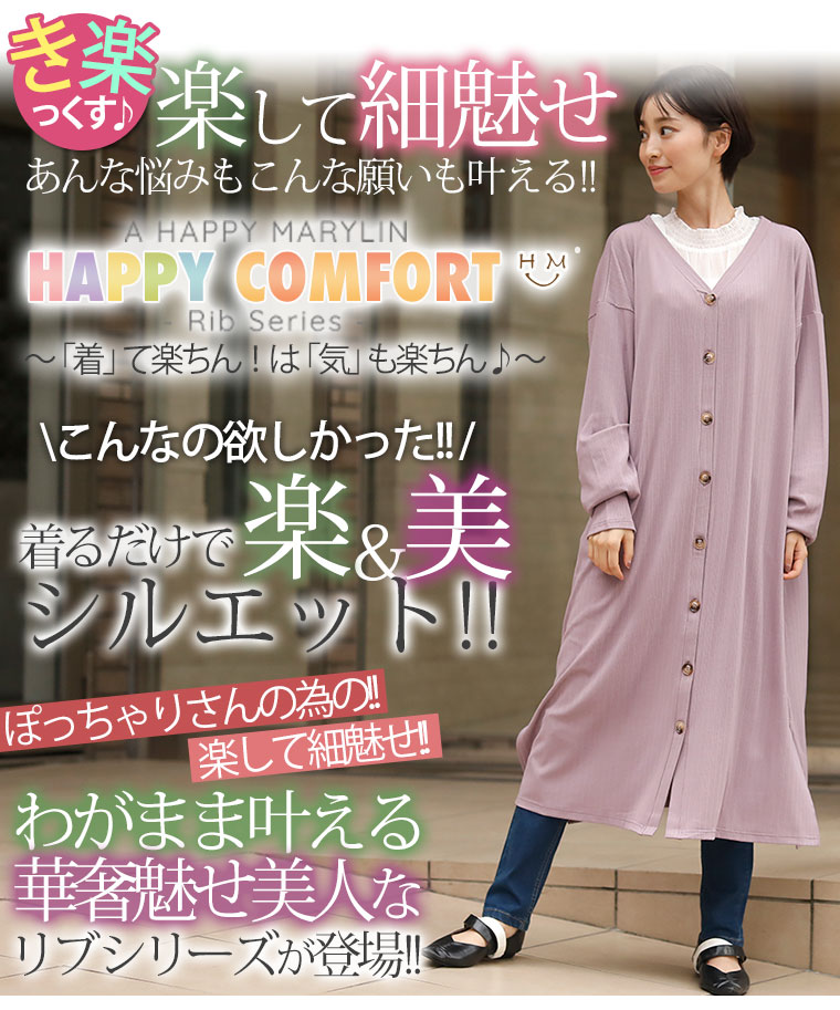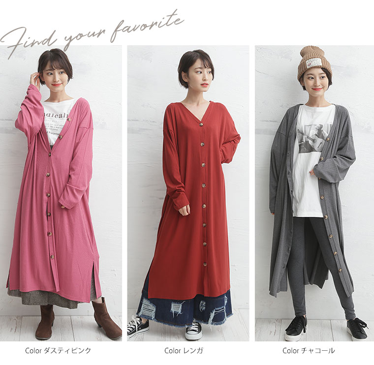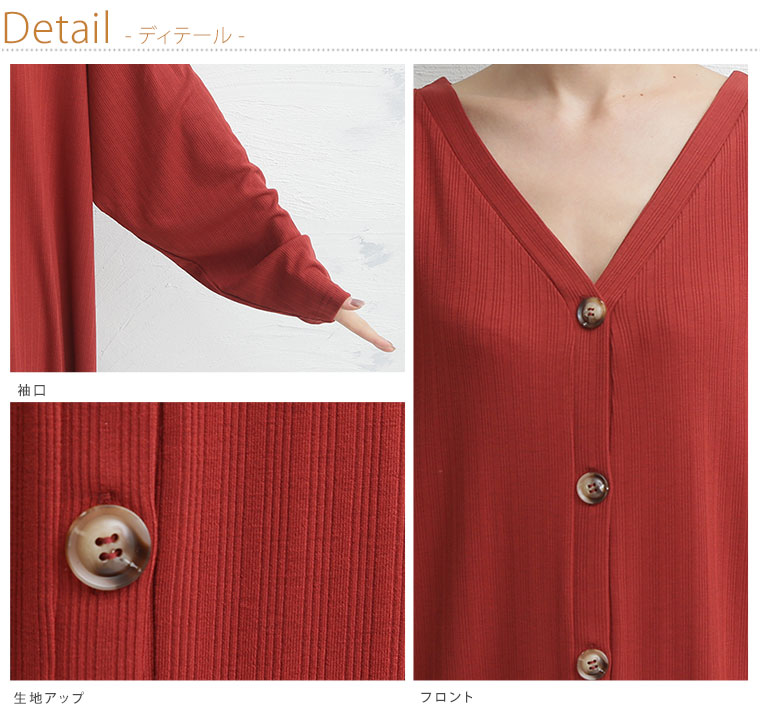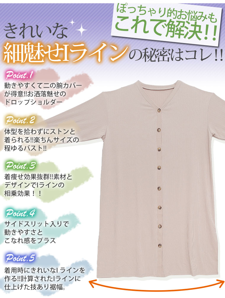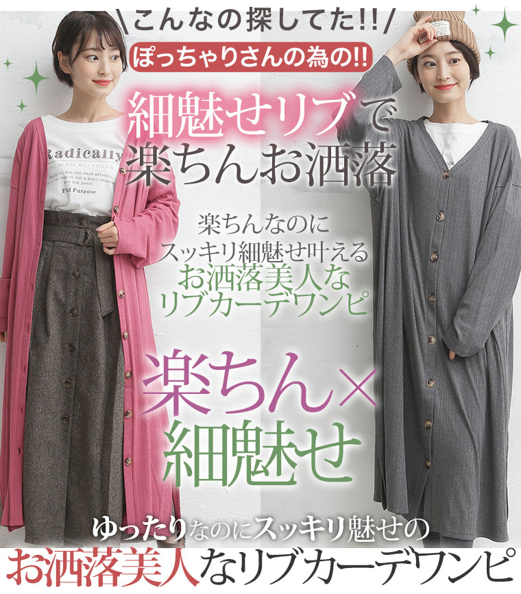 ゆったりなのに細魅せ!き楽っくす リブ2wayボタン付きカーデワンピース