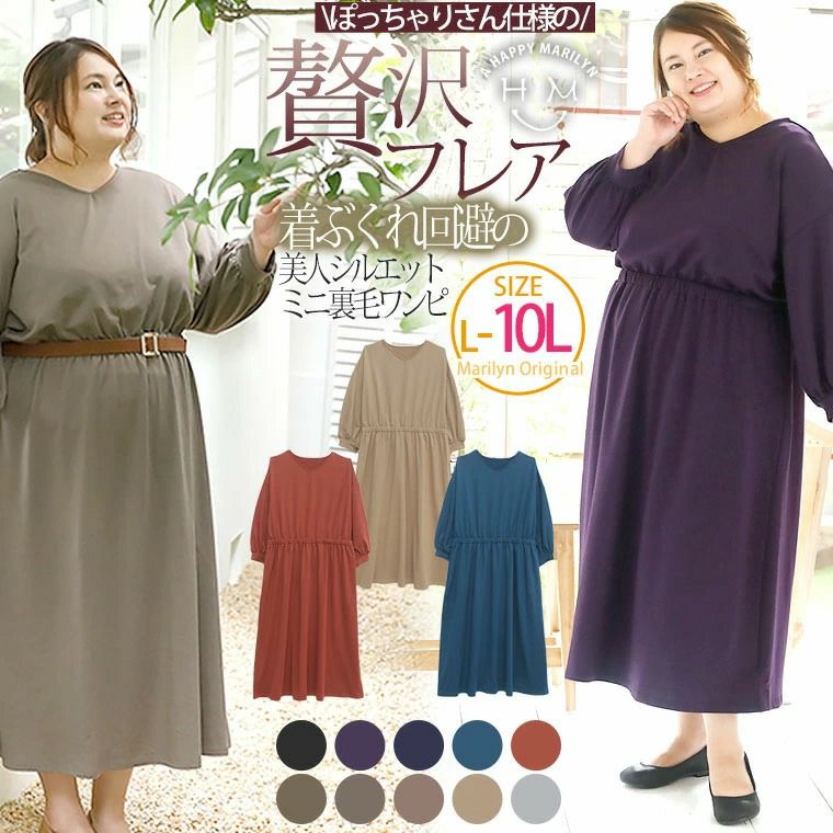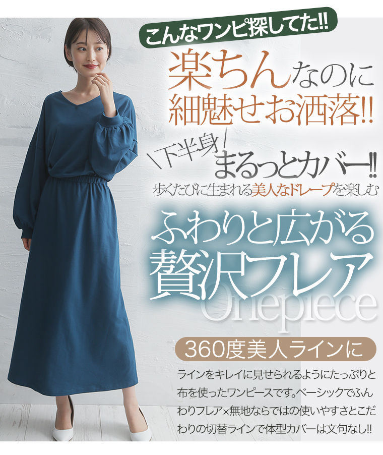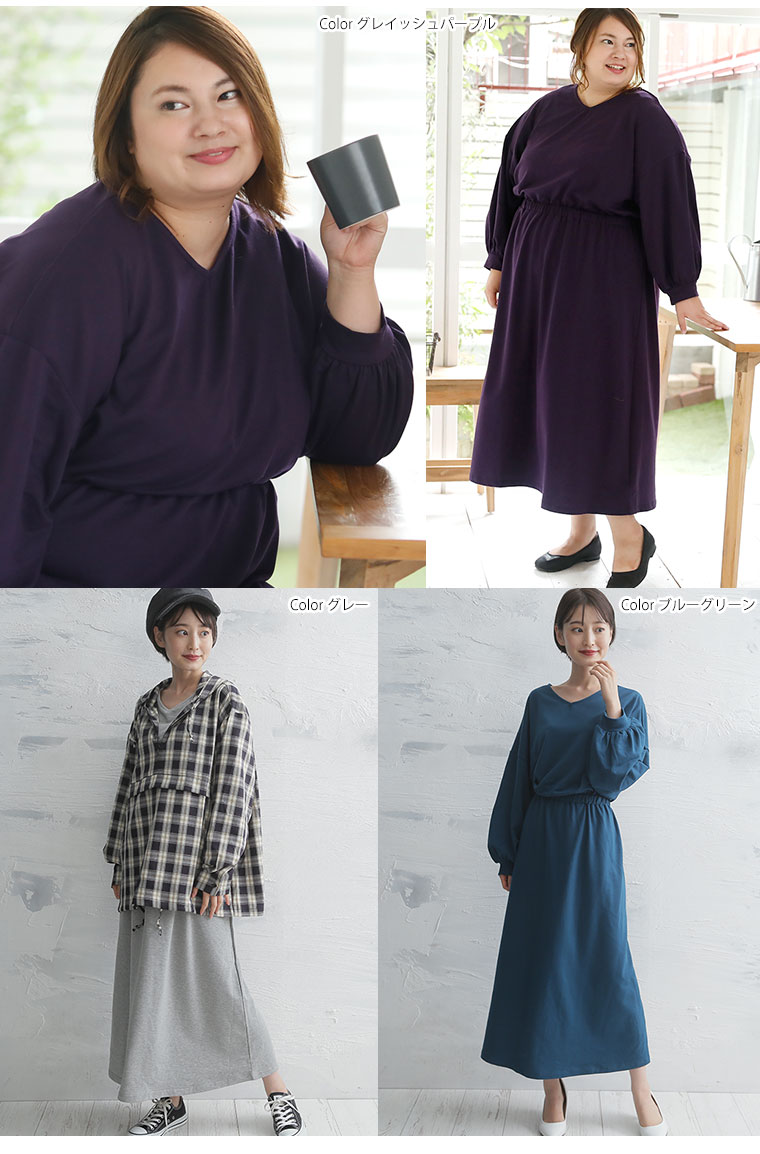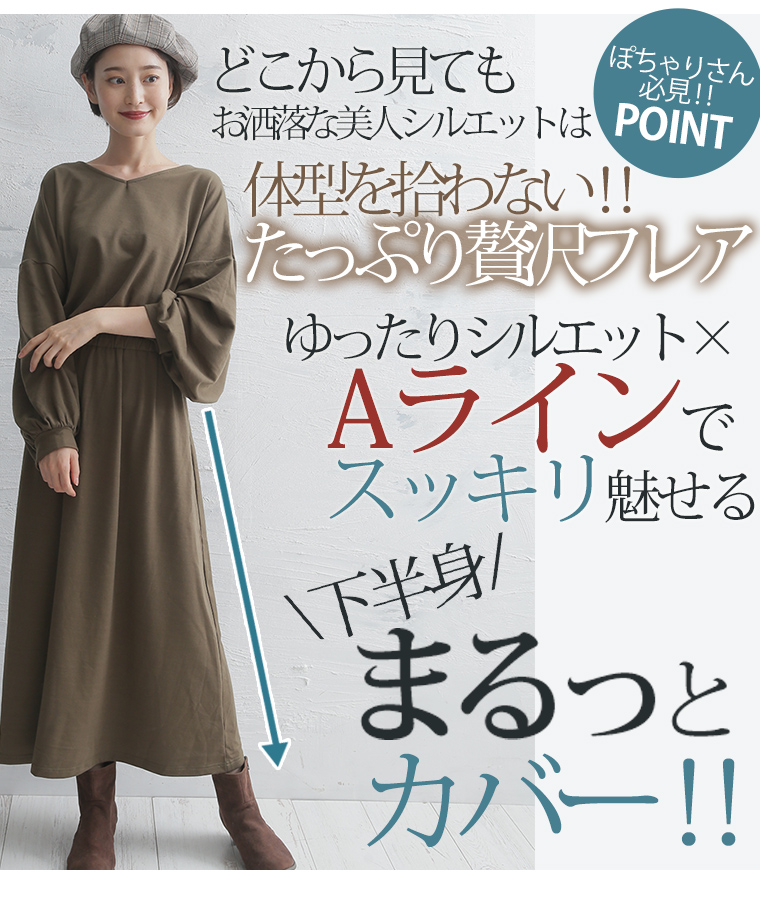 ぽっちゃりさん仕様の!たっぷり贅沢フレアの裏毛ロングワンピース