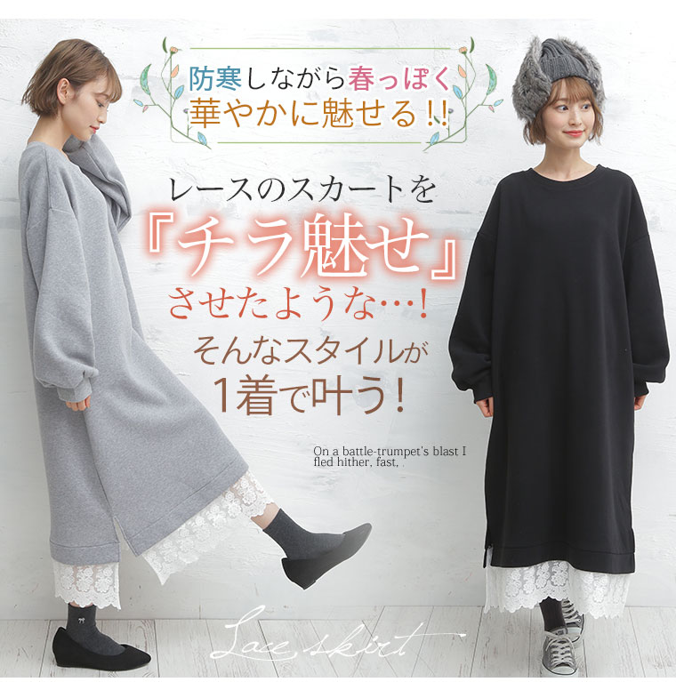 レースでかわいく♪フレアが大人のカジュアルワンピース