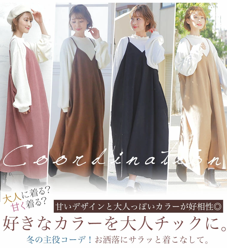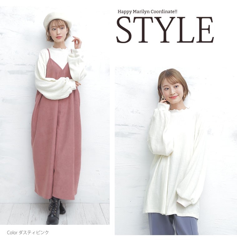 楽ちんにゆったり着れる!スッキリ魅せリブトップス×キャミワンピース