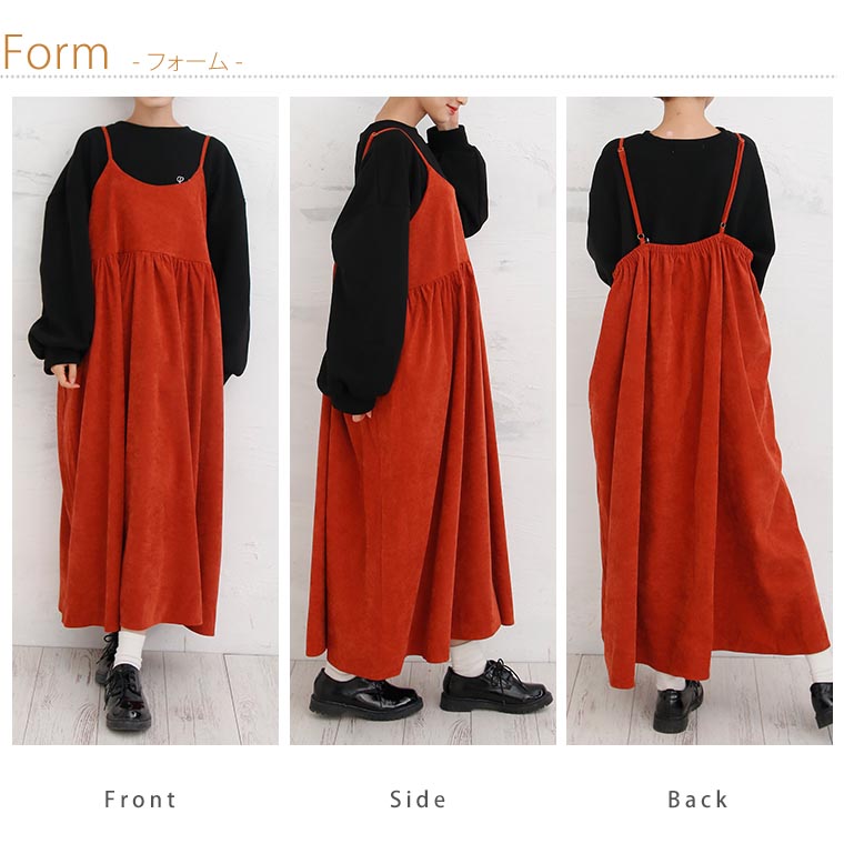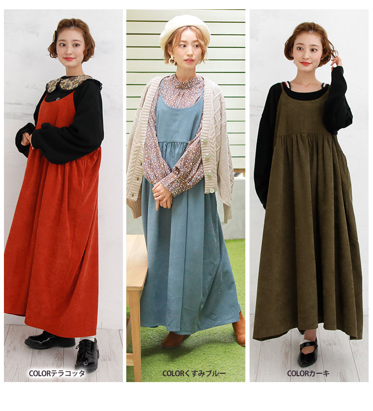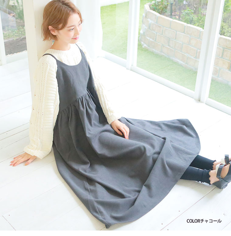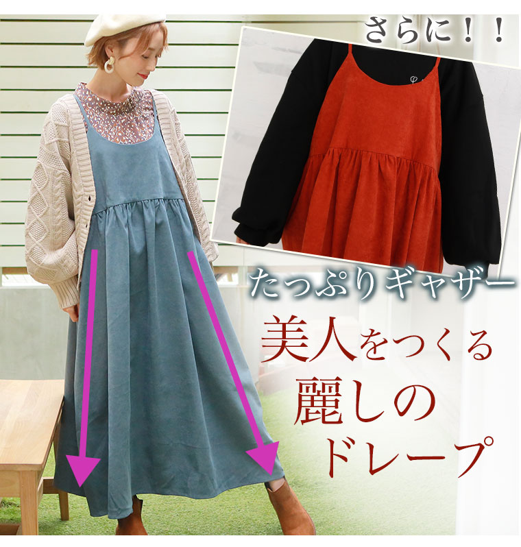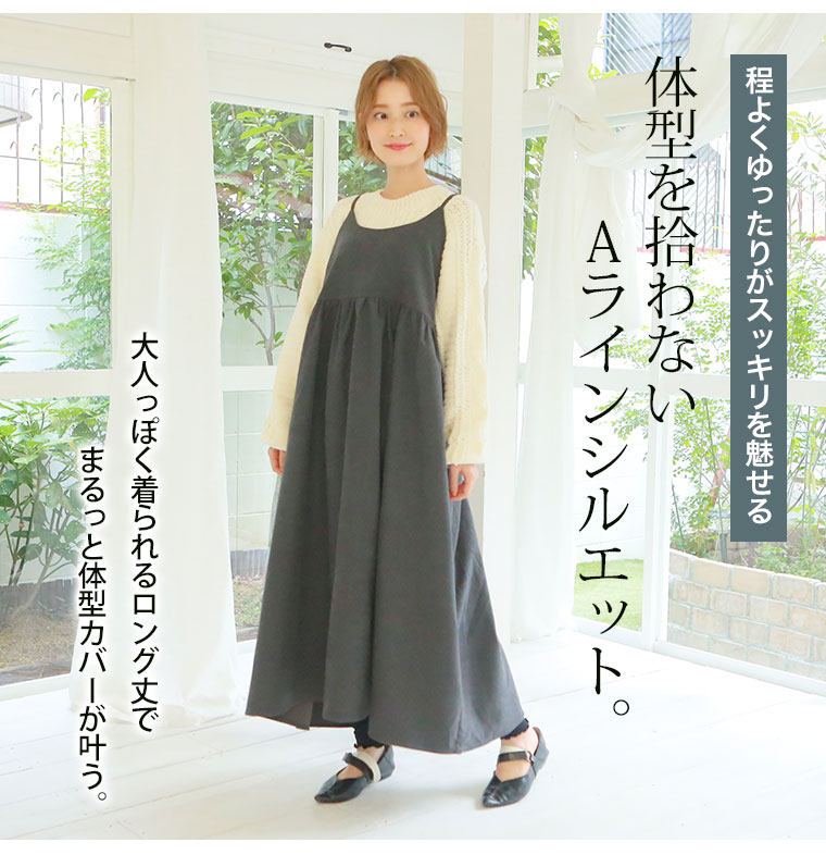 体型を拾わないAラインシルエット。大人っぽく着られるロング丈でまるっと体型カバーが叶う。