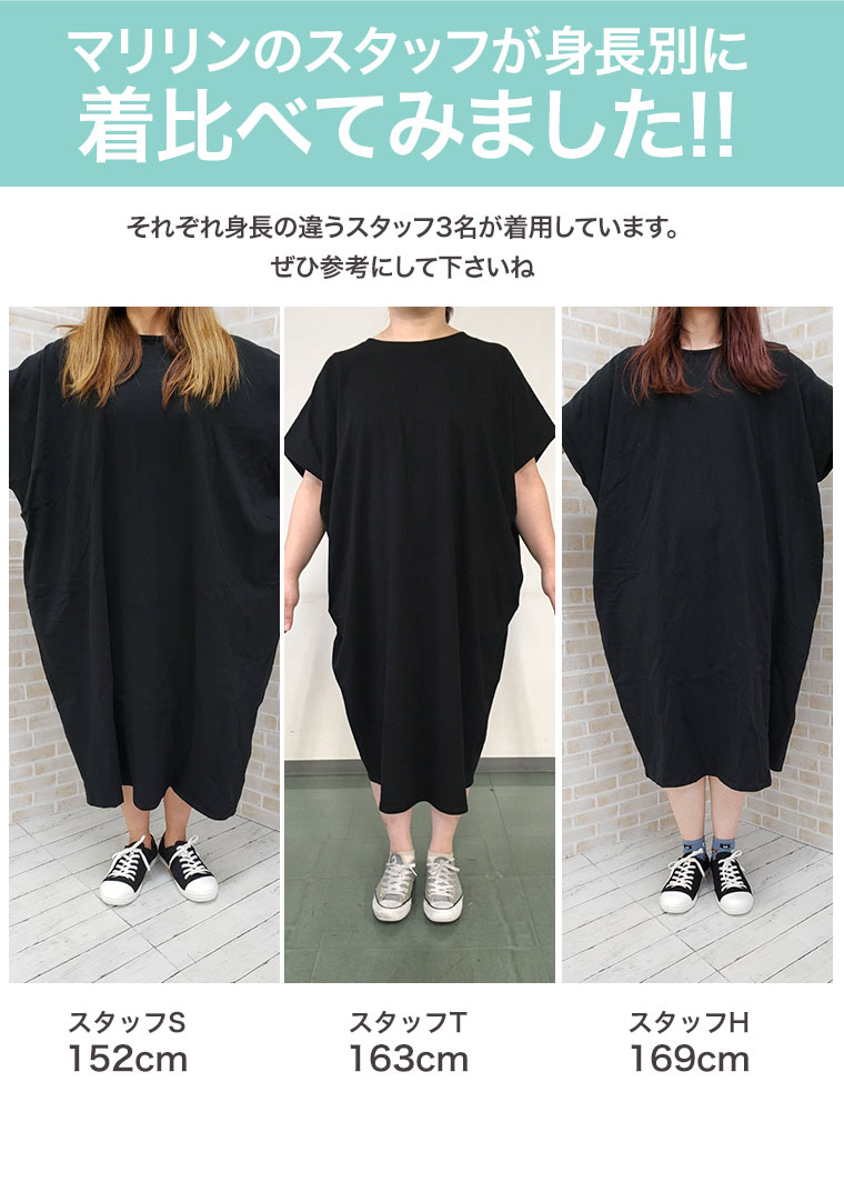 ゆとりをもって着用することができました。ゆるっと着られて着やせ効果も大です!私のサイズ感でふくらはぎあたりの着丈でした。