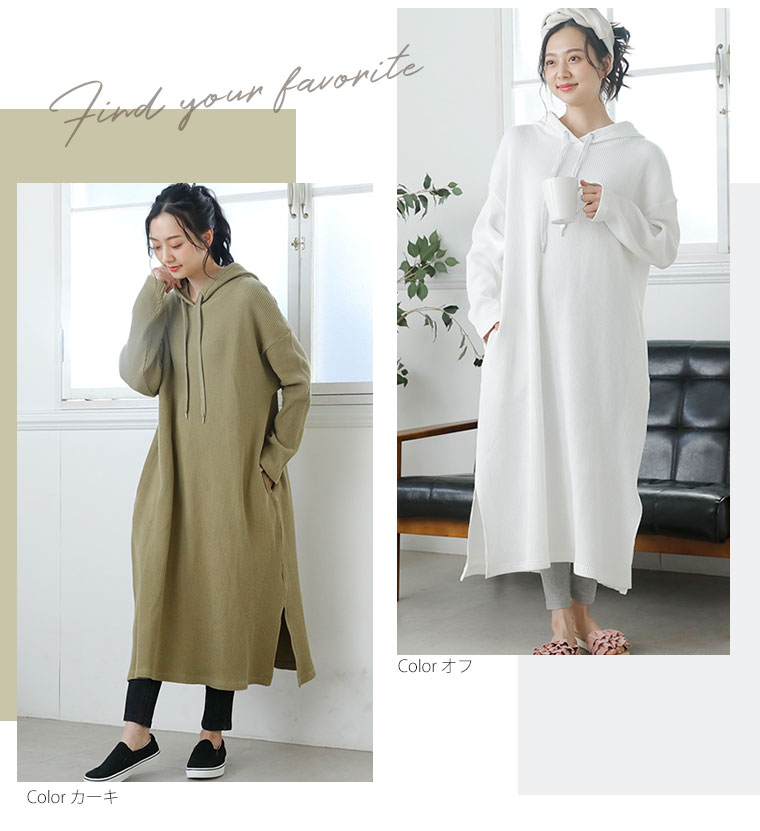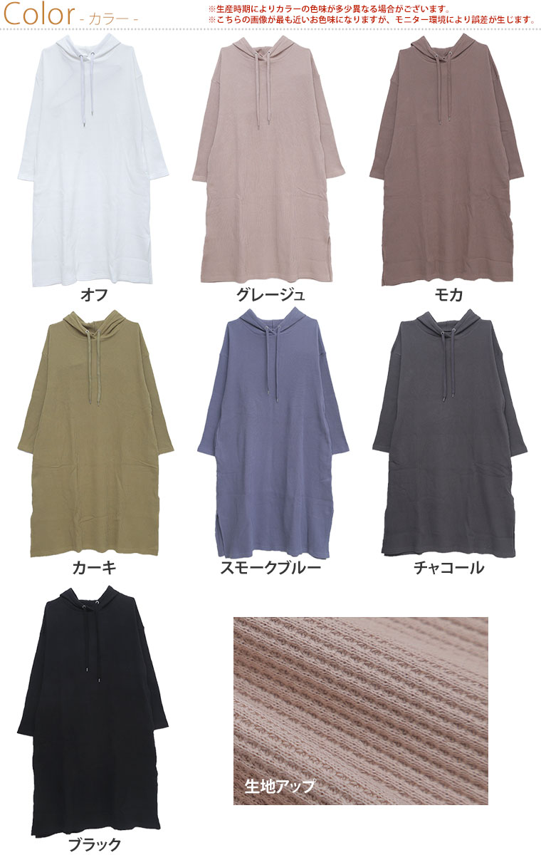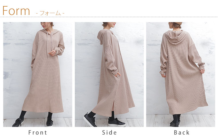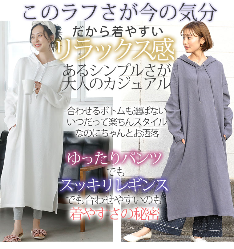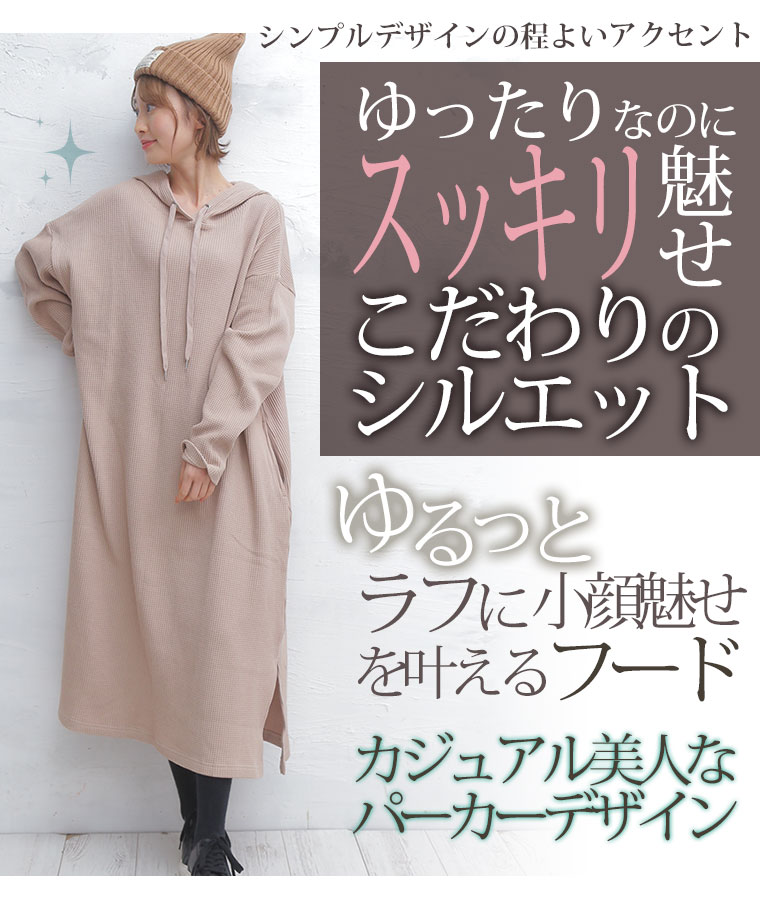 さらりと心地よい ゆったりなのにスッキリ着られるワッフルパーカーワンピース