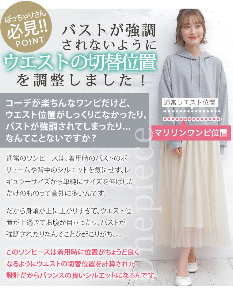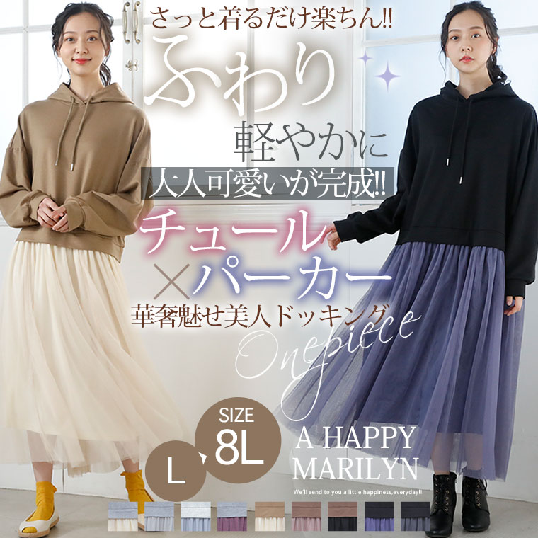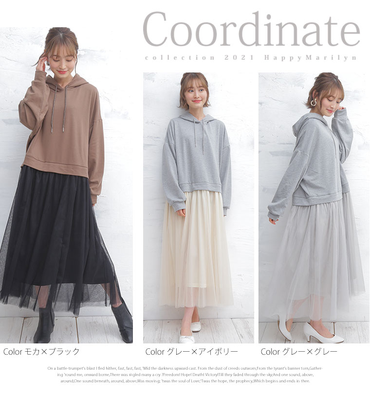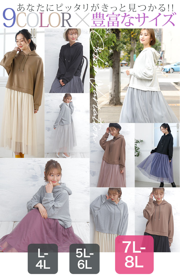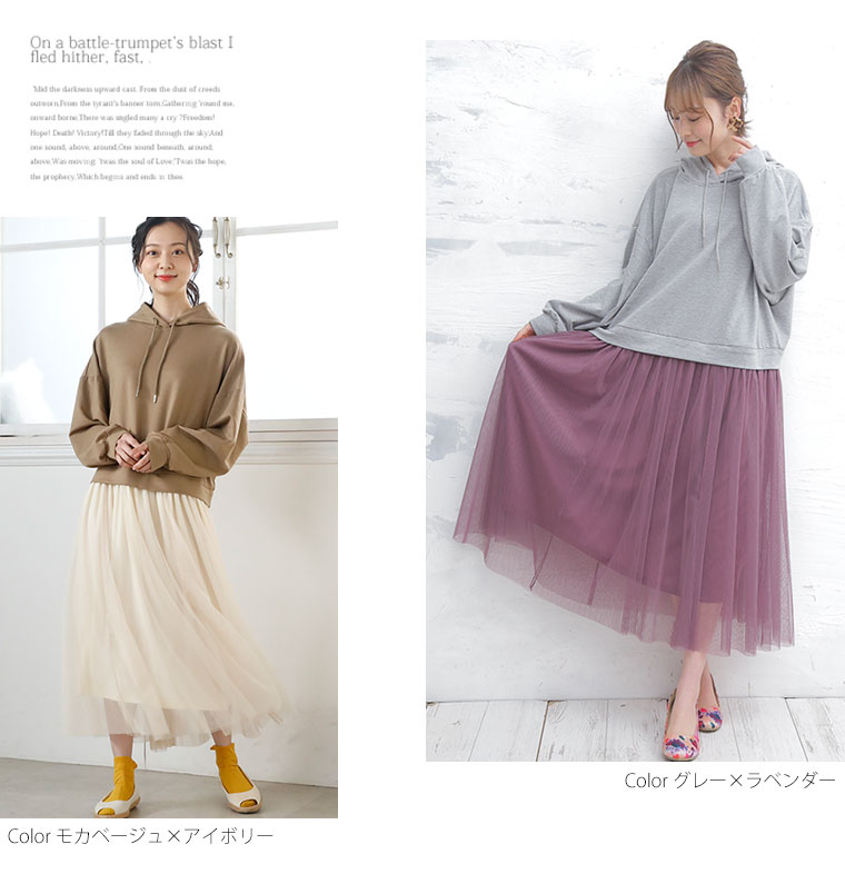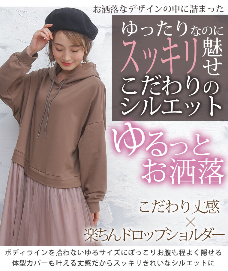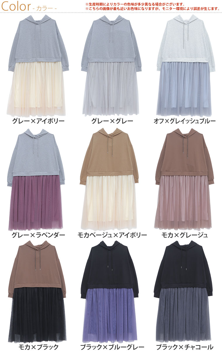1枚着るだけ!ふわりと軽やかなチュールが美シルエットのドッキングパーカーワンピース