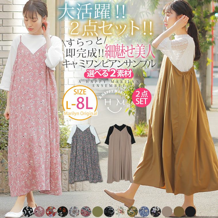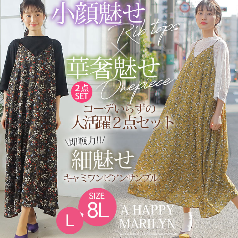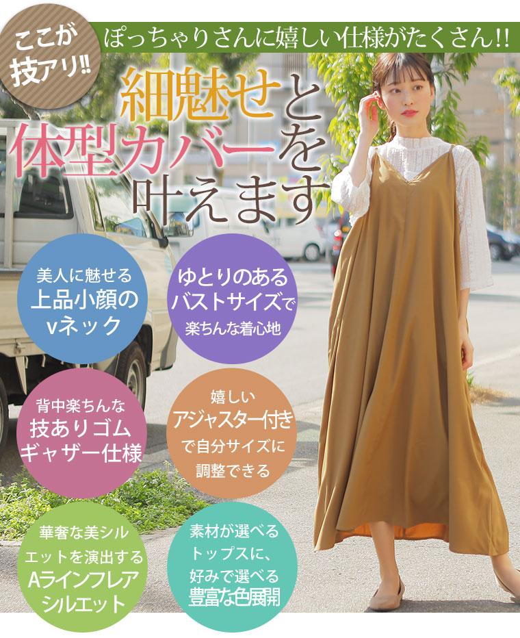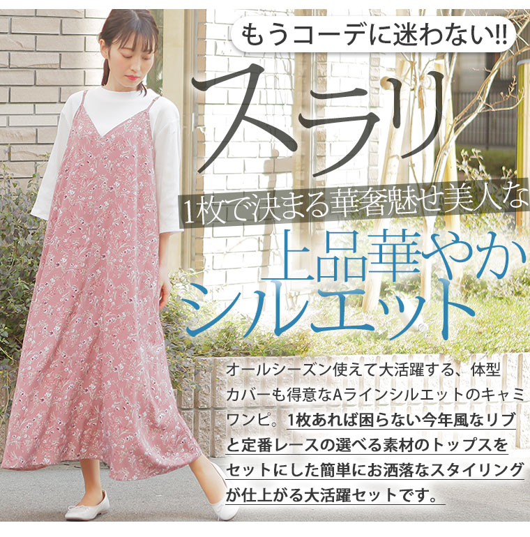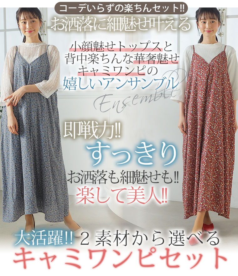 大活躍!2点セット楽して美人!小顔魅せトップス&背中楽ちん 細魅せキャミワンピアンサンブル