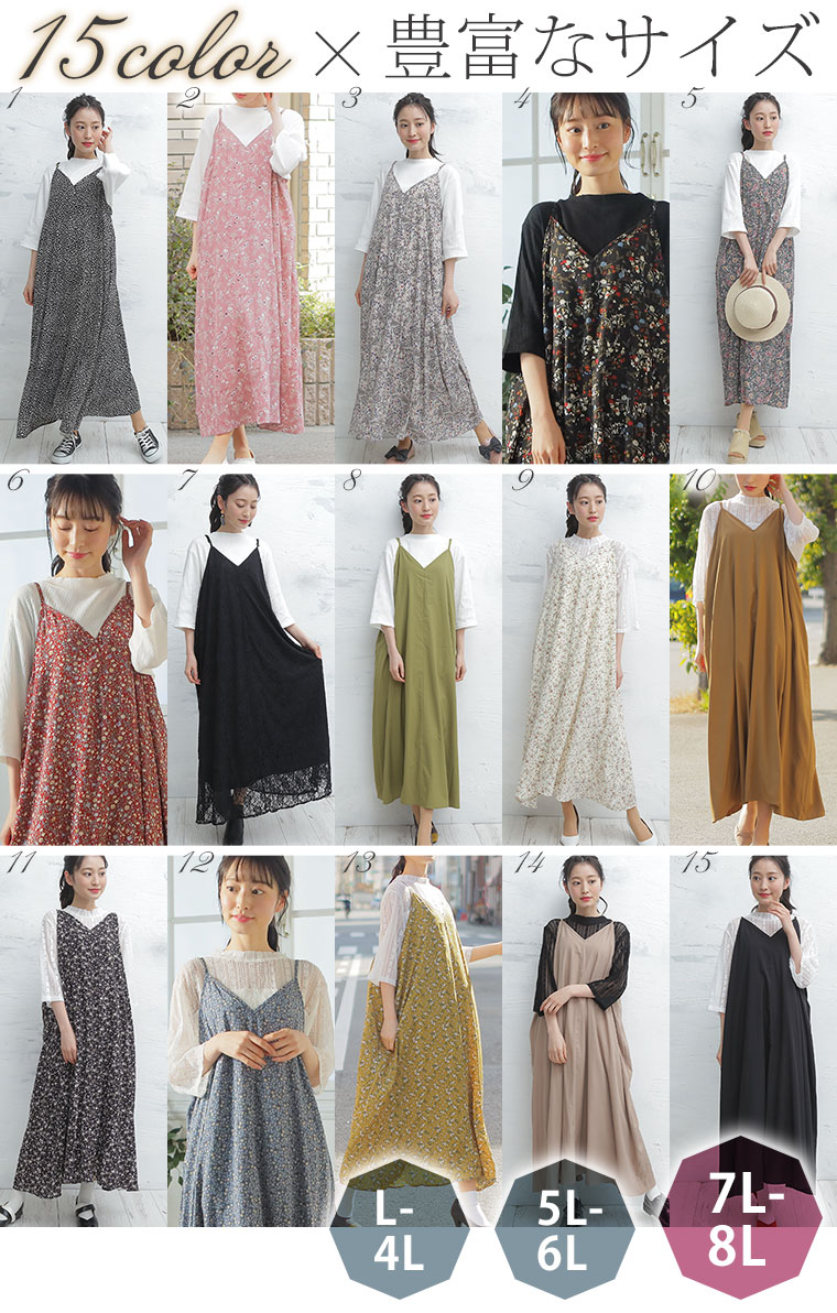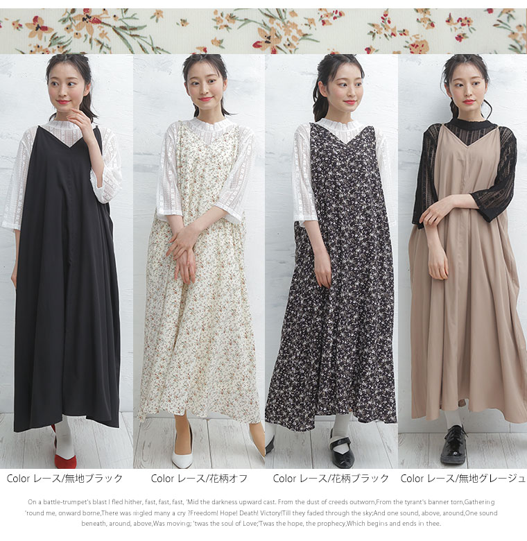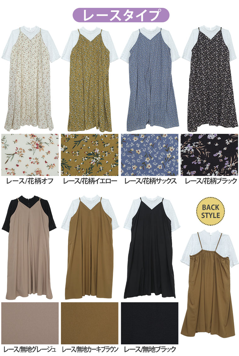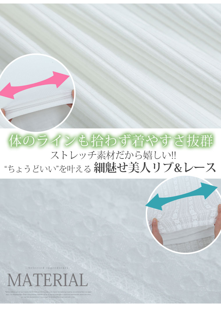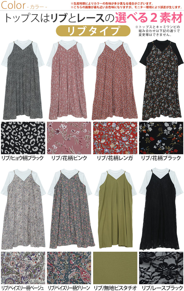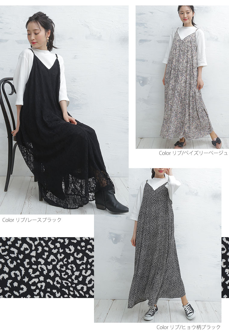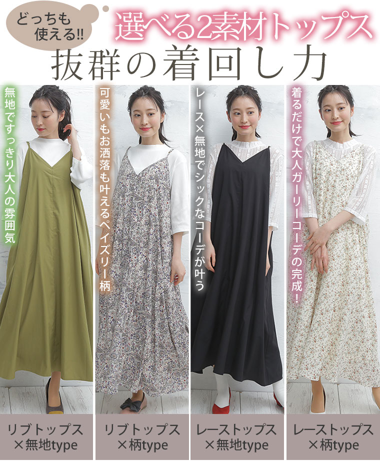 着るだけお洒落魅せ!リブとレースの2素材から選べるキャミワンピアンサンブル