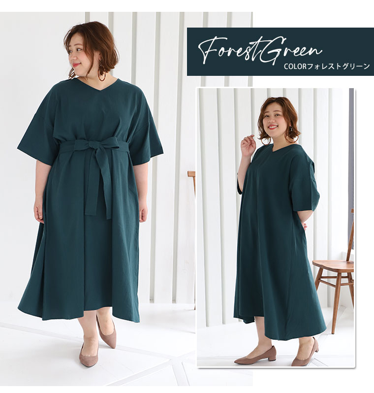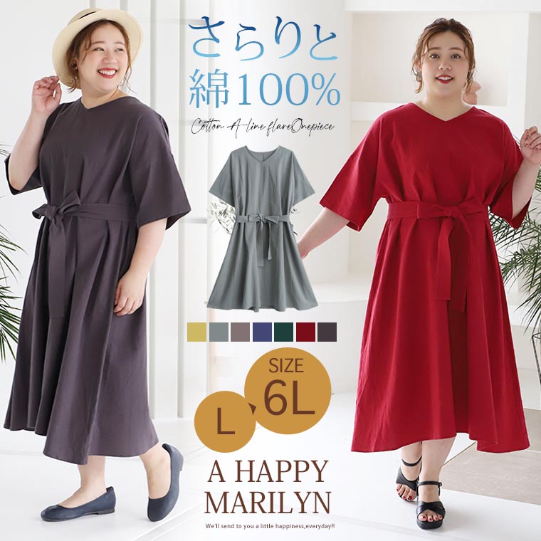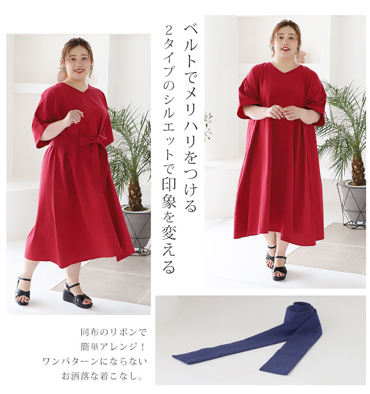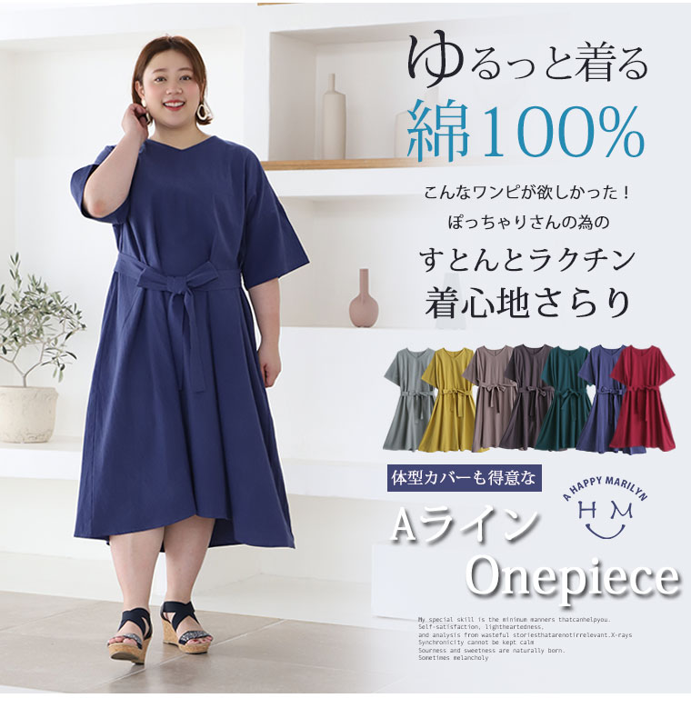 すとんと楽チン着心地さらりベルト付きAラインワンピース