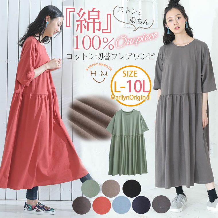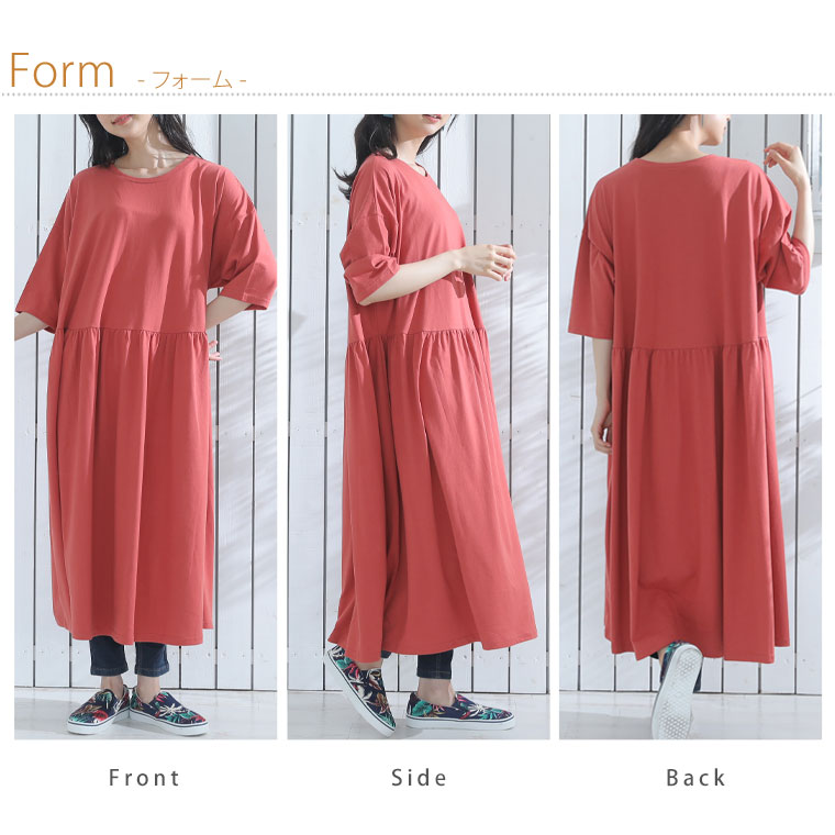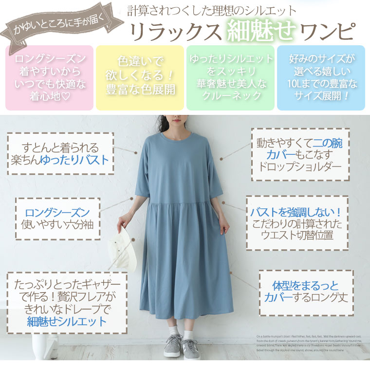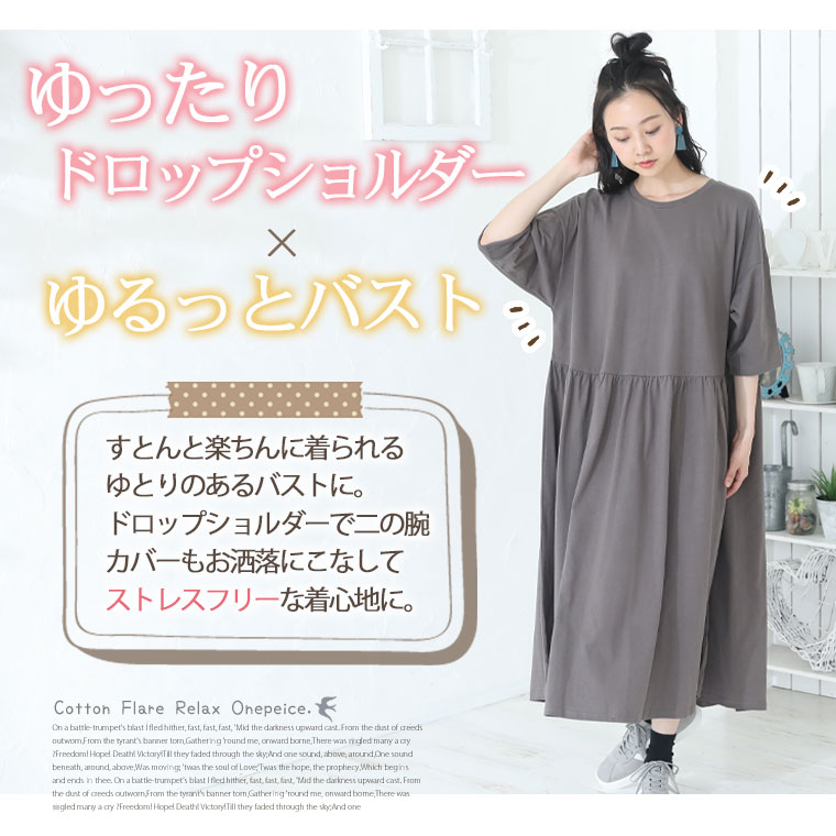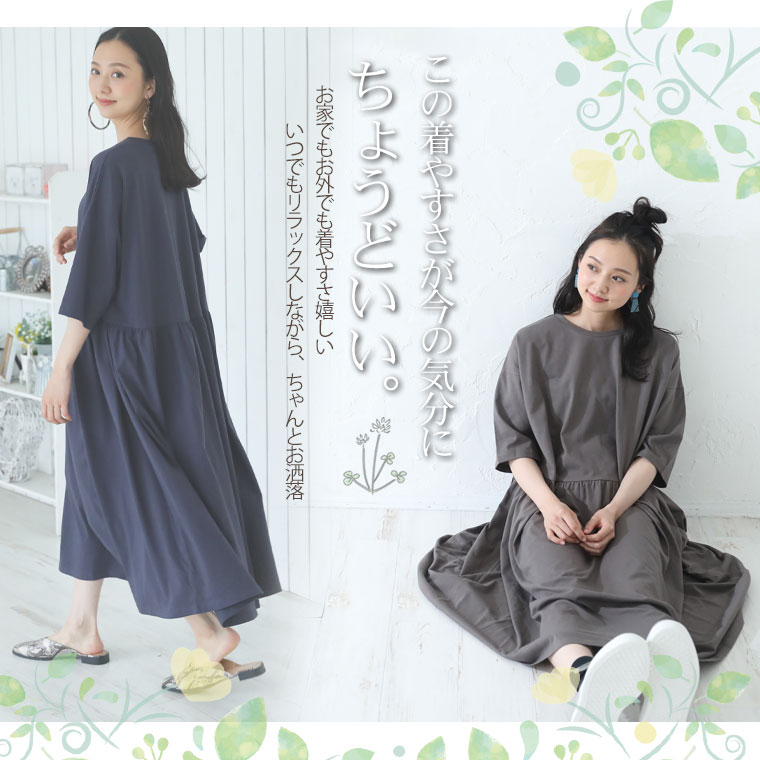 綿100%さらりと心地良いゆったり楽ちんリラックス細魅せコットンワンピ