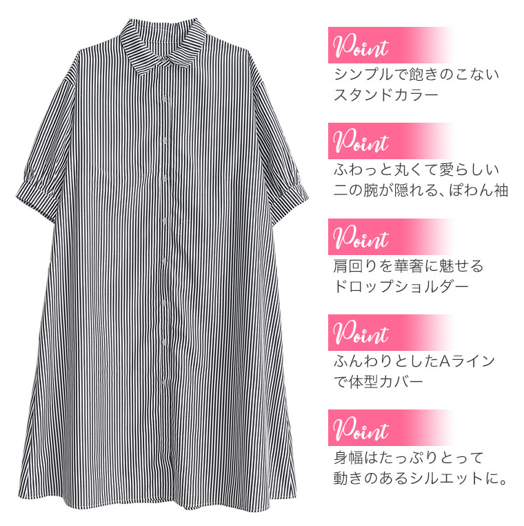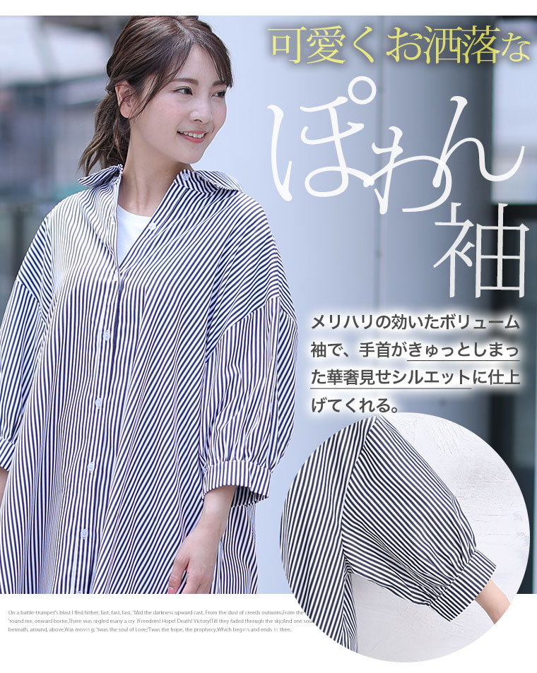 レギンスやスキ ニーと相性抜群!選べる柄・ぽわん5分袖シャツワンピース