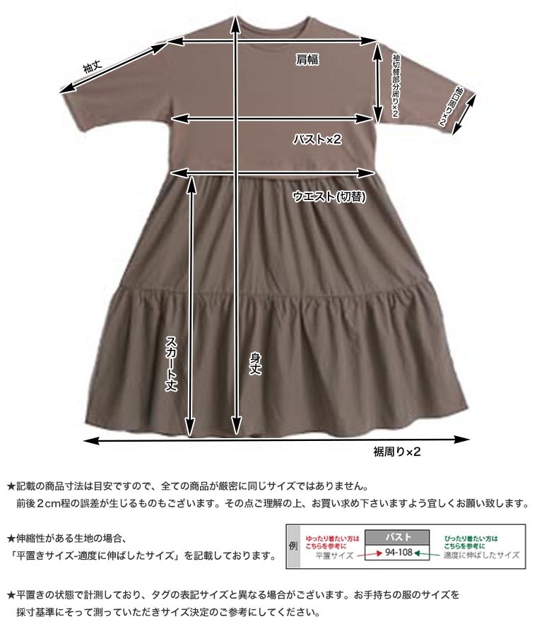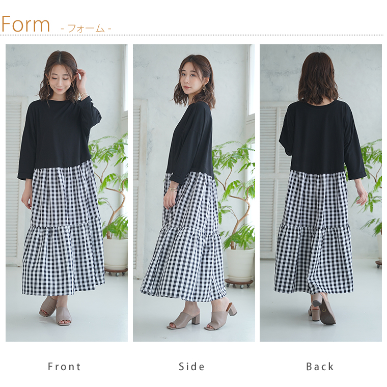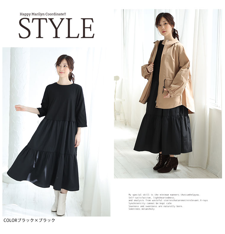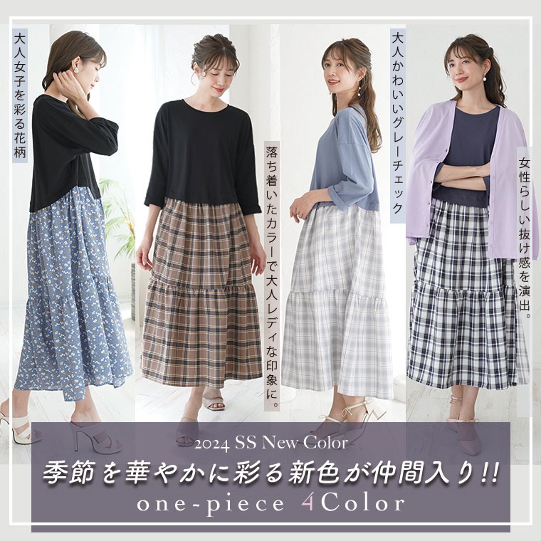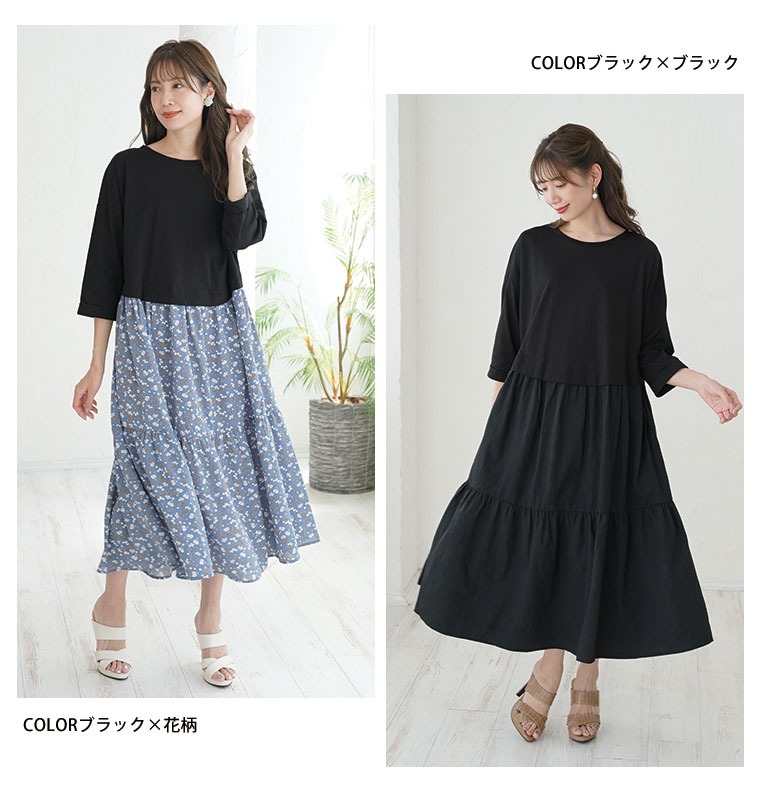 4. 大きいサイズ 新色追加!! すとんと楽ちん美人!綿100% トップス × ティアード の着心地美人な ドッキングワンピース