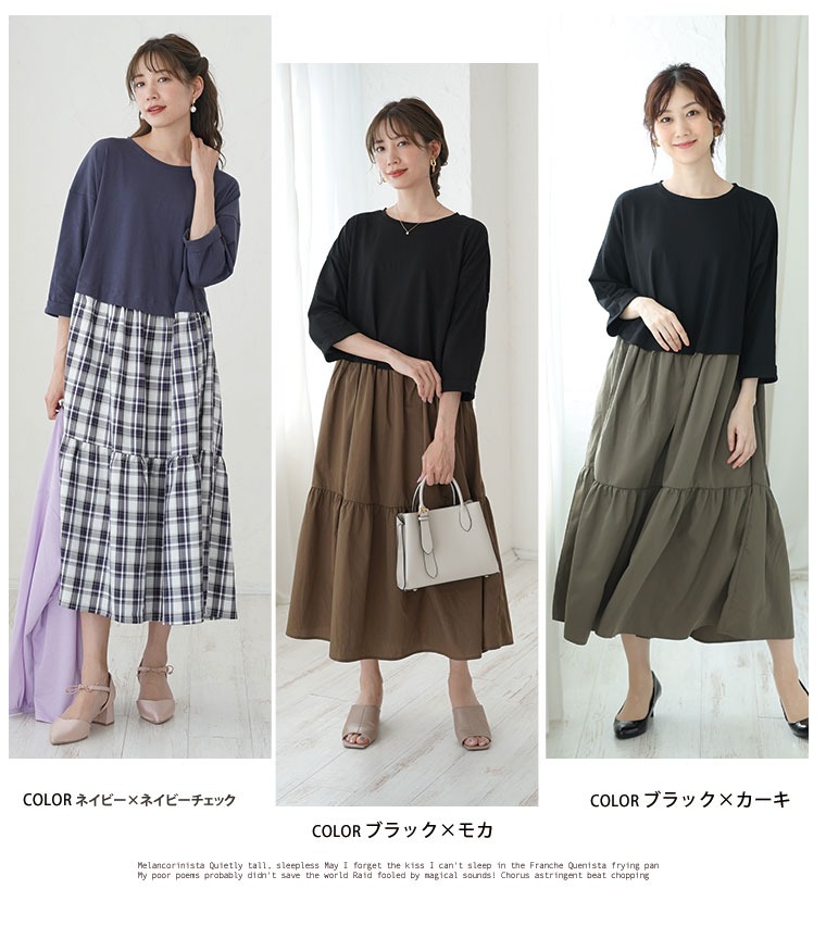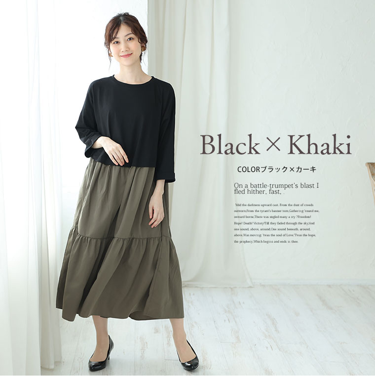 3. 大きいサイズ 新色追加!! すとんと楽ちん美人!綿100% トップス × ティアード の着心地美人な ドッキングワンピース